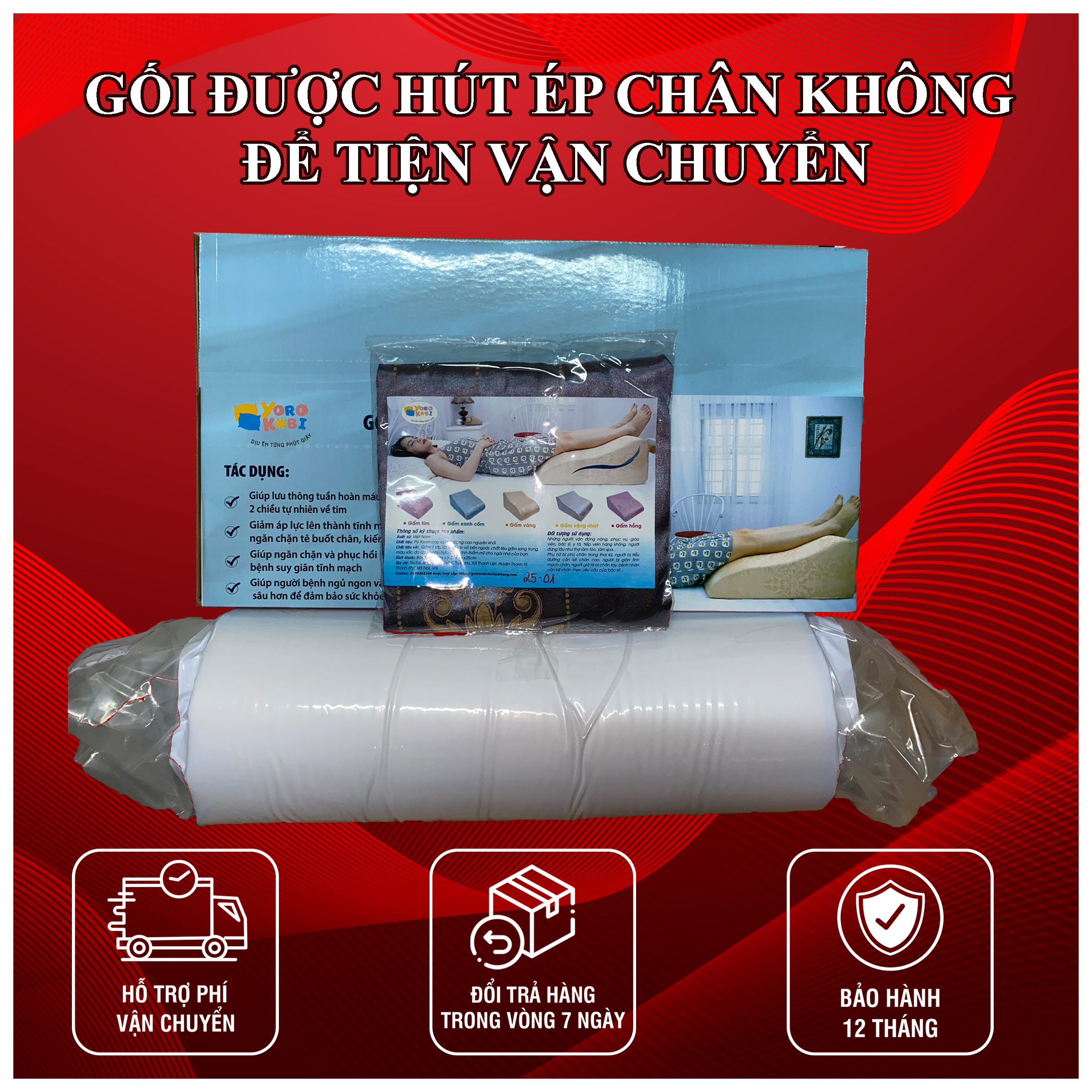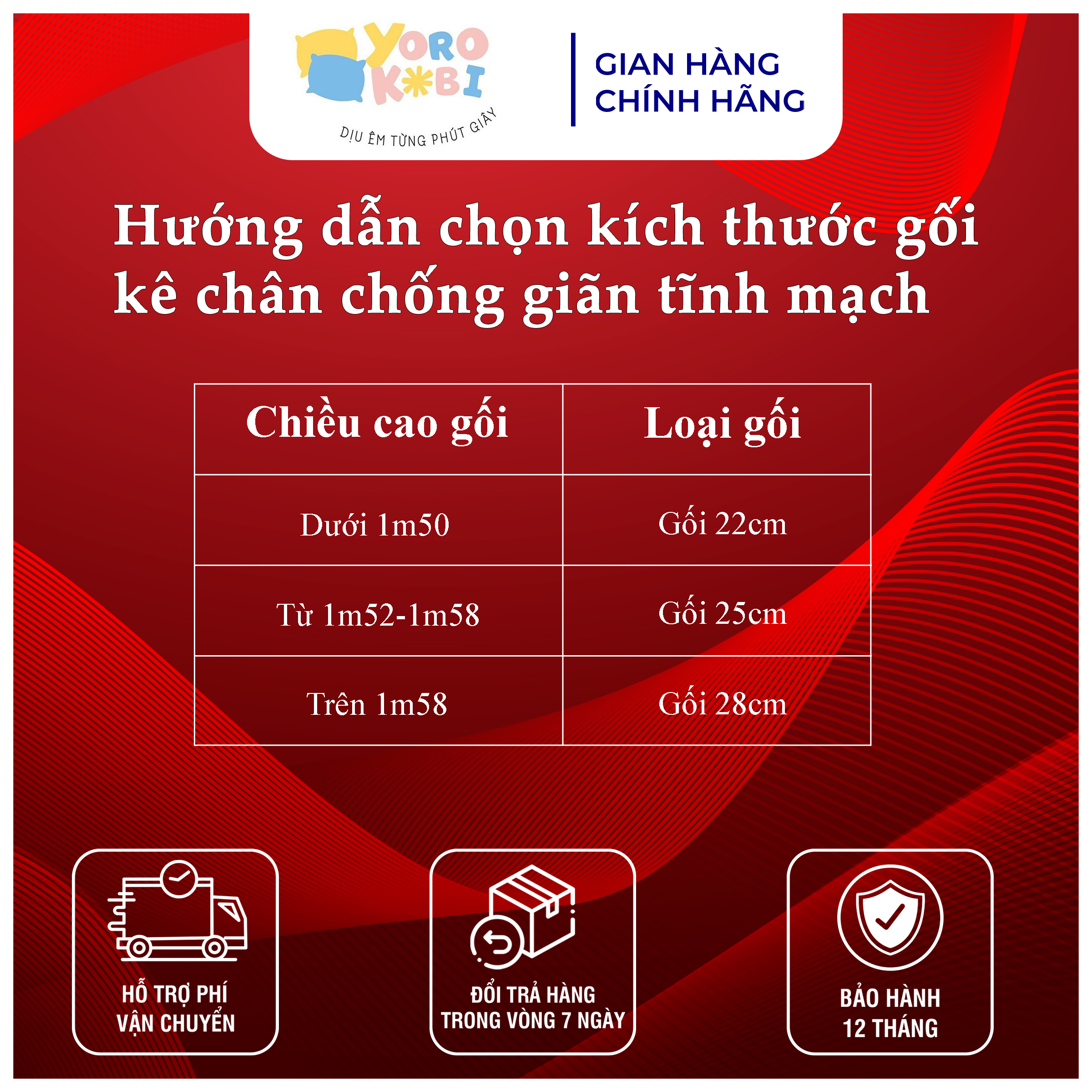 Gối giãn tĩnh mạch Yorokobi là 1 trong 3 sản phẩm gối thuộc thương hiệu Yorokobi bao gồm: gối trào ngược và gối kê lưng thoát vị đĩa đệm. Đây là thương hiệu gối có bảo hộ thương hiệu chống hàng nhái hàng giả của CỤC SỞ HỮU TRÍ TUỆ, độc quyền về hình dáng.