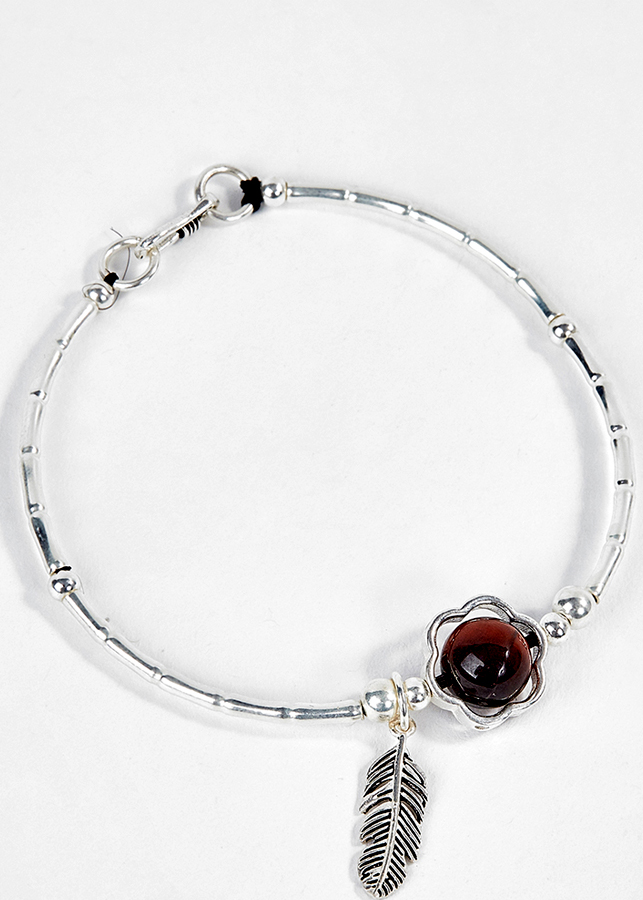 Vòng Bạc Hạt Đá Mắt Hổ Nâu Đỏ Phối Charm Lá Ngọc Quý Gemstones