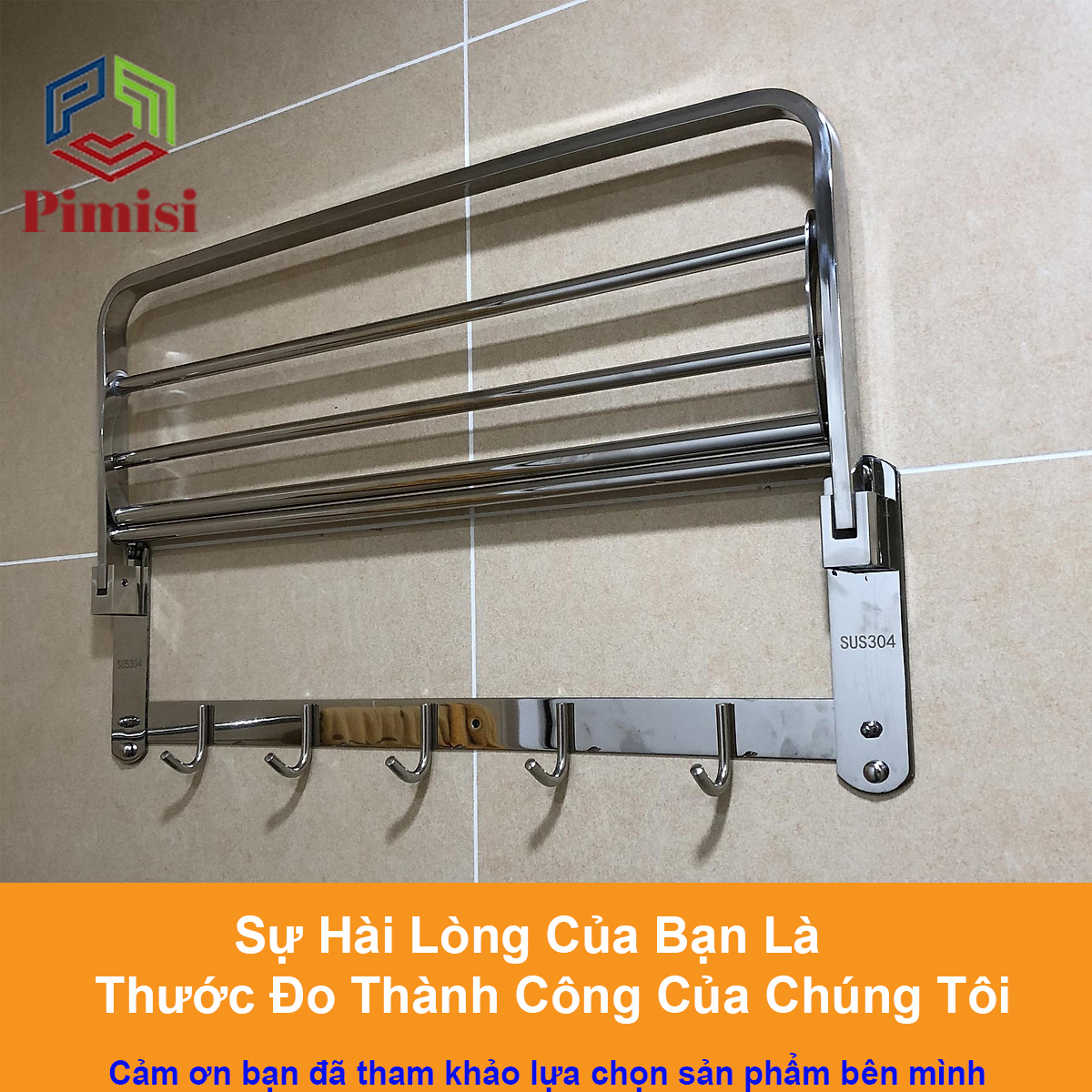 Kệ giá treo khăn tắm dán tường trong nhà vệ sinh Pimisi PR-011WM inox 304 giàn đa năng có kèm keo dán | hàng chính hãng
