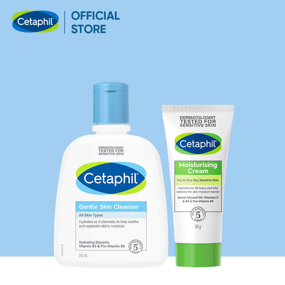 Combo Làm sạch và Dưỡng ẩm cho da nhạy cảm Sữa rửa mặt Cetaphil Gentle Skin Cleanser 250ml + Kem dưỡng ẩm Cetaphil Moisturizing Cream 50g