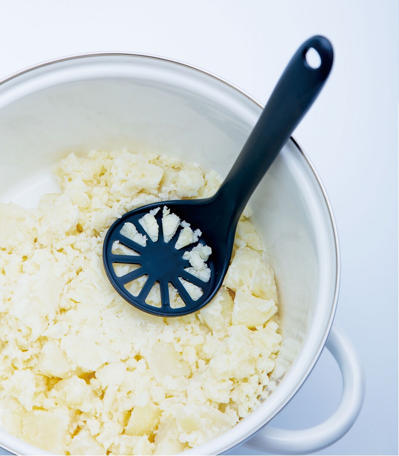 ● Thiết kế đầu tròn cùng với tạo hình răng cưa giúp cho muôi ép/ nghiền thực phẩm được nhuyễn, không bị trơn trượt