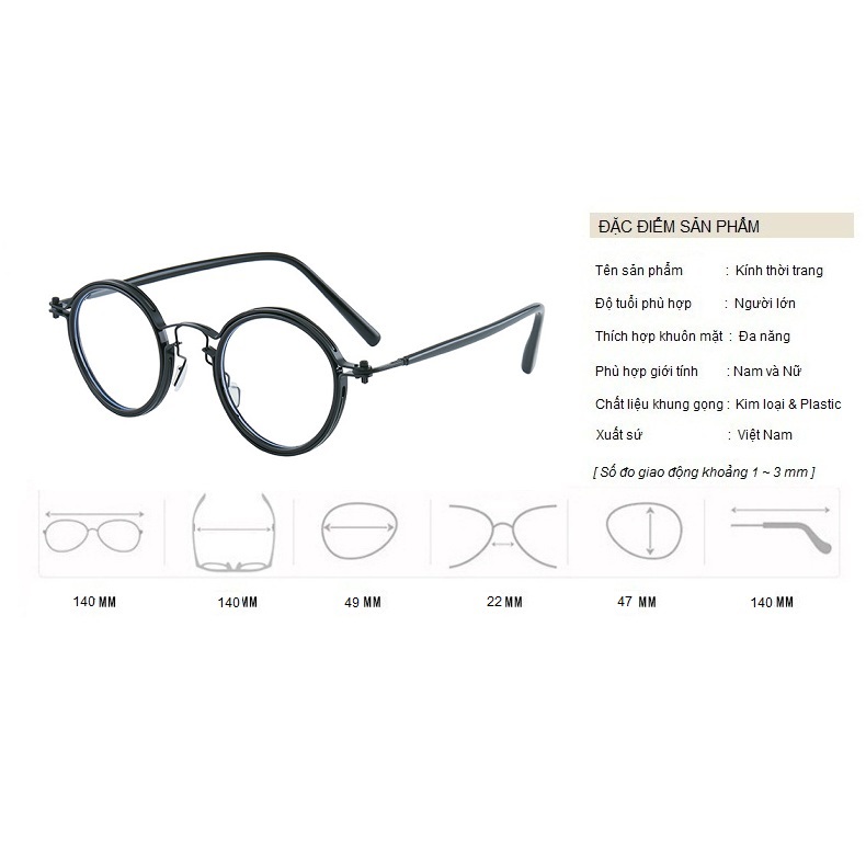 230,000₫Giới thiệu Gọng Kính Cận, Kính Giả Cận Nam Nữ, Mắt Tròn Khung Kim Loại Bọc Nhựa Độc Lạ Đen, Trong Suốt - BLUE LIGHT