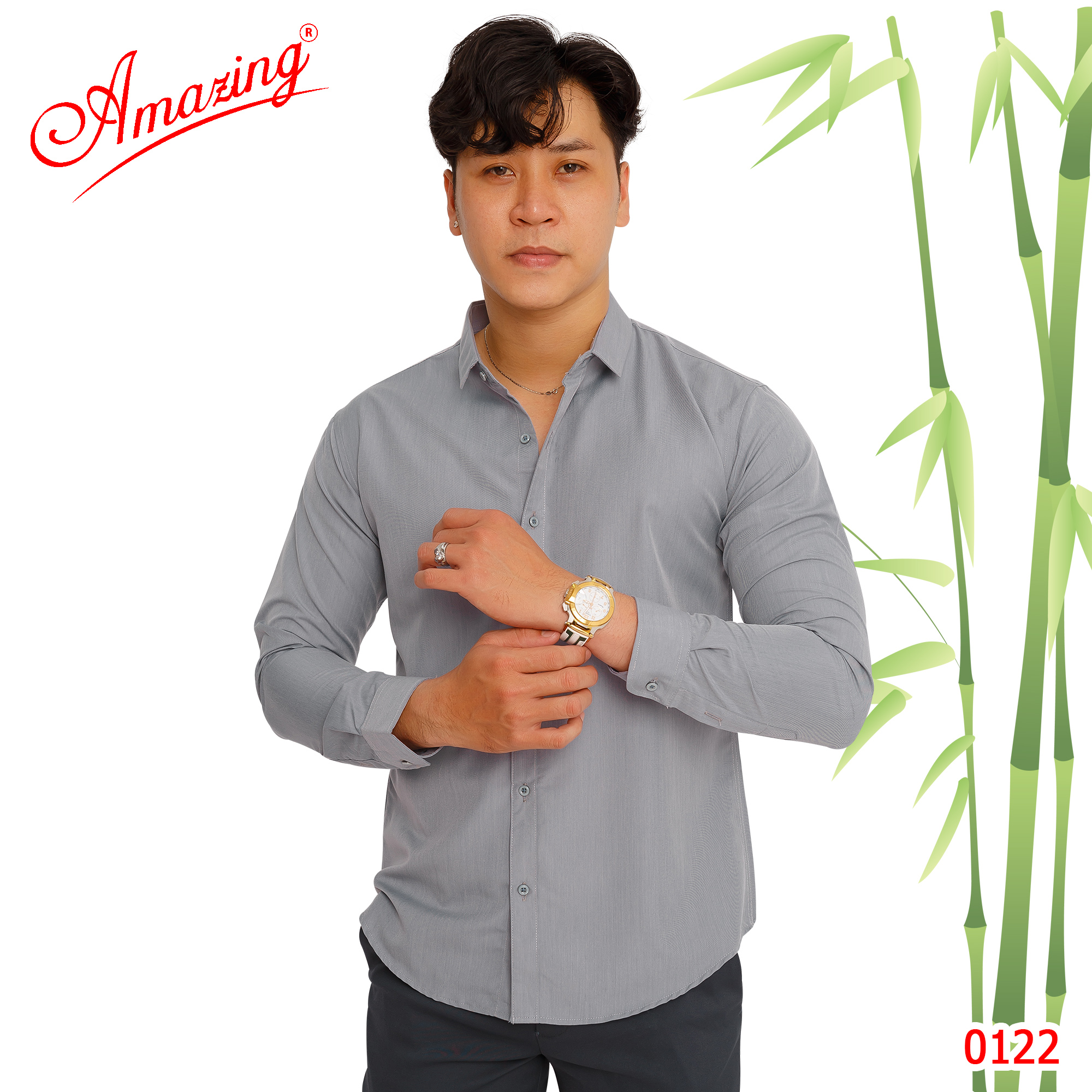 Áo sơ mi nam màu vàng pastel, hiệu cao cấp Amazing, dáng body slim fit, không túi, style Hàn Quốc
