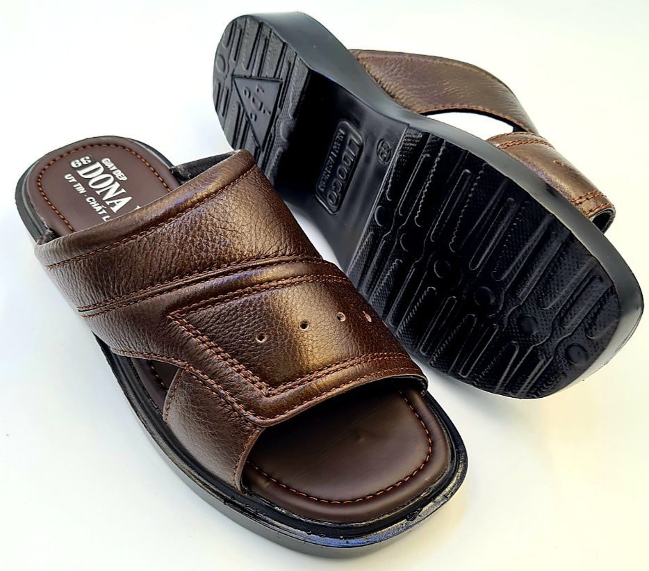 - Dép Nam với chất liệu da bò bền đẹp kết hợp đế cao su êm nhẹ chống trơn trượt giúp bạn Nam luôn thoải mái, tự tin khi đi chơi, dạo phố, đi làm nơi công sở hay đi dự tiệc.