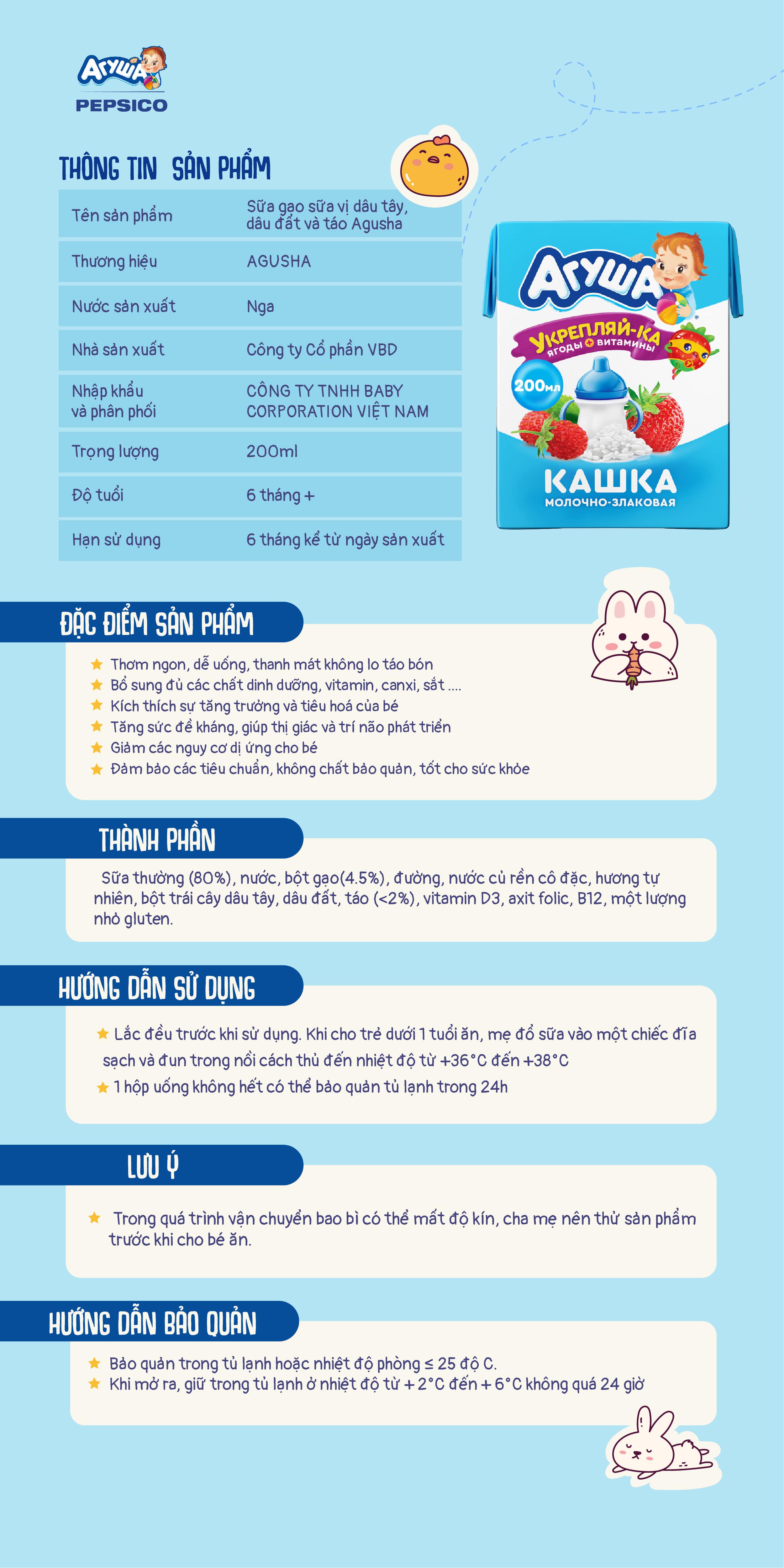 Giới thiệu Combo 20 hộp Sữa gạo sữa vị dâu tây, dâu đất và táo Agusha 200ml/hộp