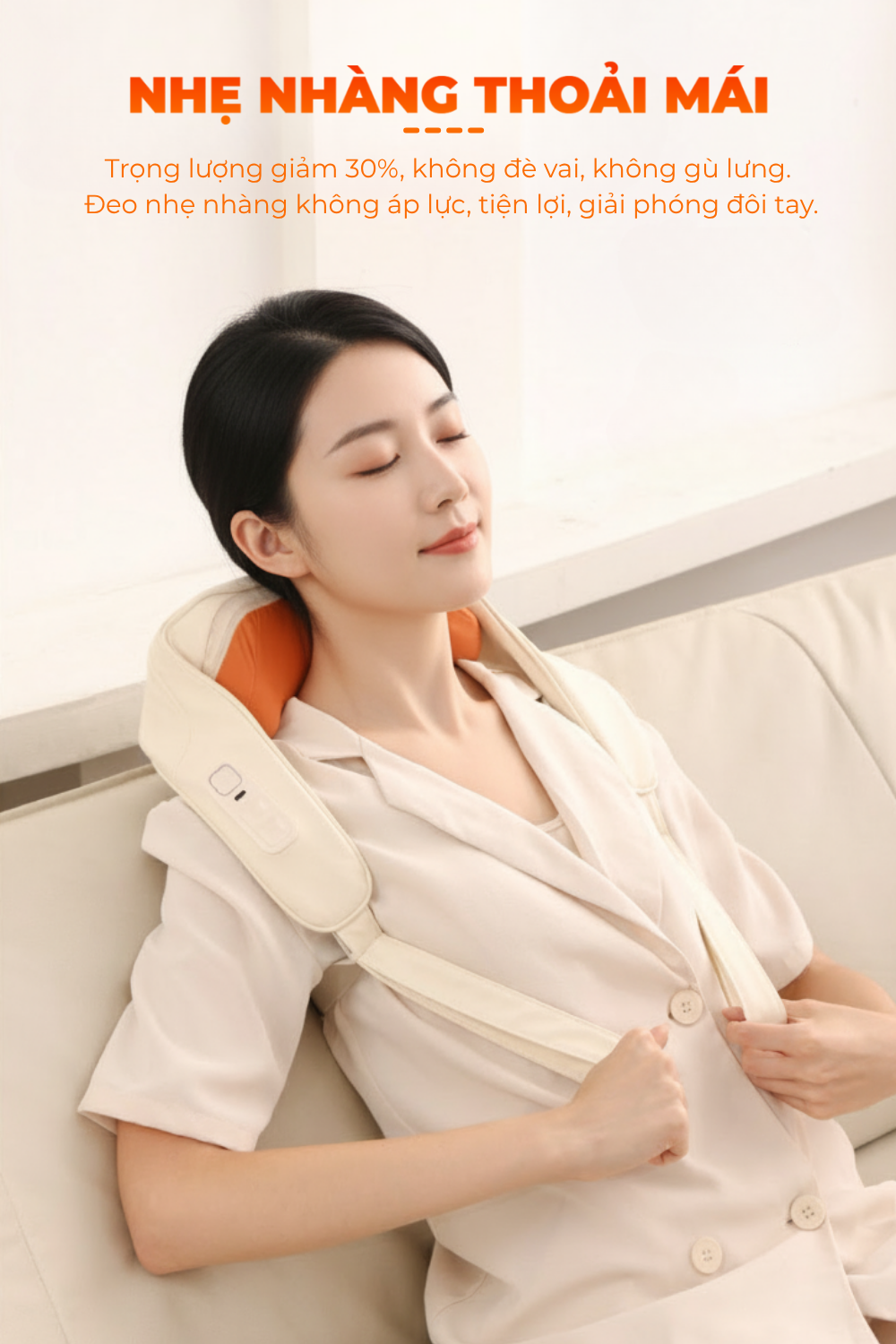 Quàng máy lên cổ vai gáy hoặc các vị trí cần massage như eo, lưng, chân.