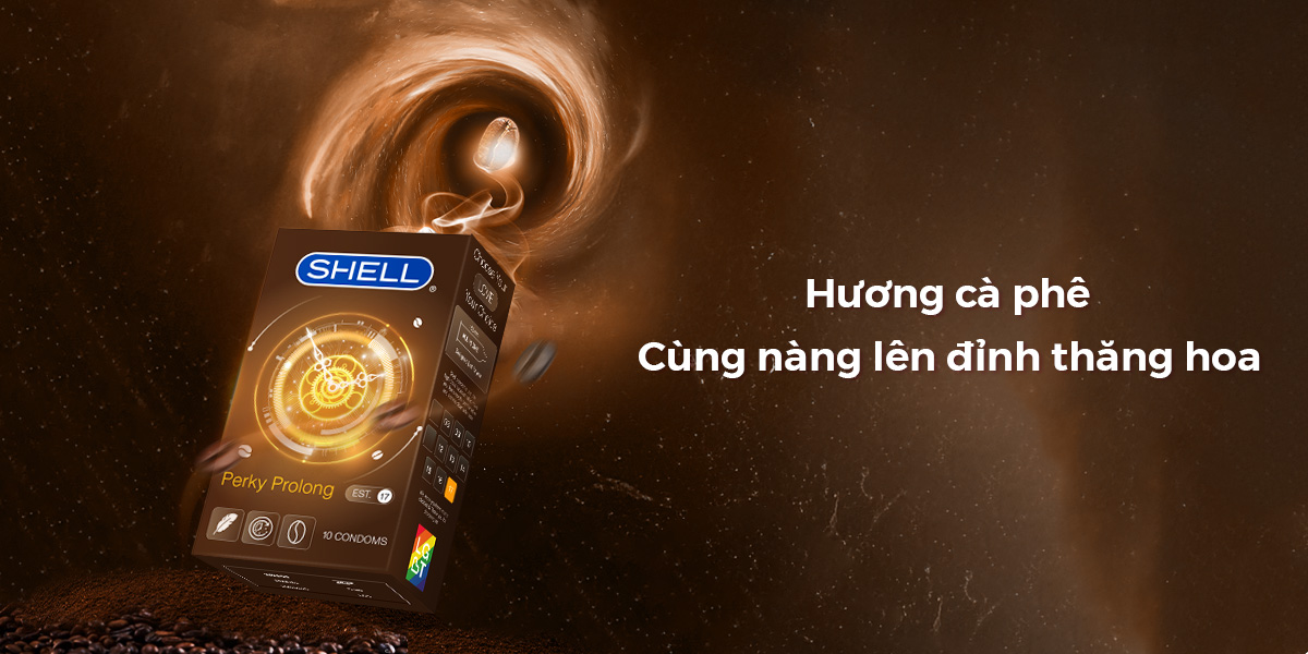 Bao cao su Shell Perky Prolong kéo dài thời gian, hương cà phê - Hộp 10 cái | SHELL CHÍNH HÃNG