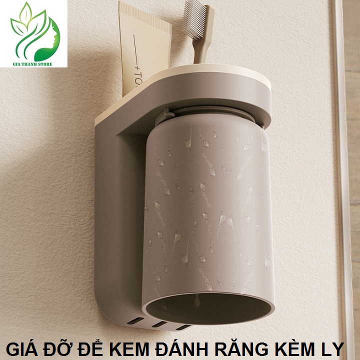 Giá đựng bàn chải kem đánh răng kèm cốc súc miệng dán tường màu ngọt ngào