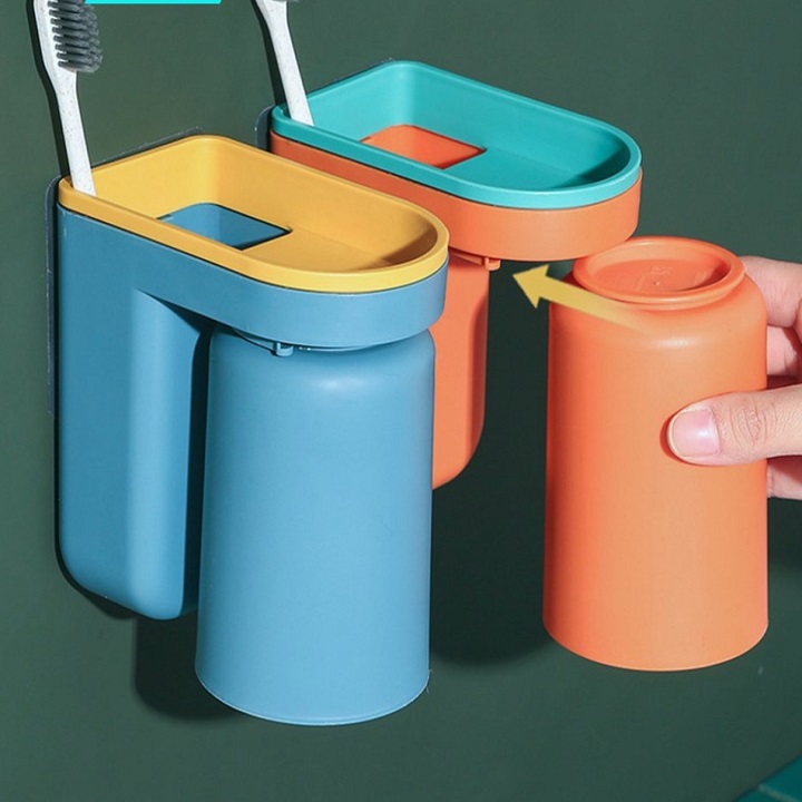 - Cốc nước súc miệng cài ngược, giữ cho cốc luôn khô ráo, màu sắc tương phản bắt mắt