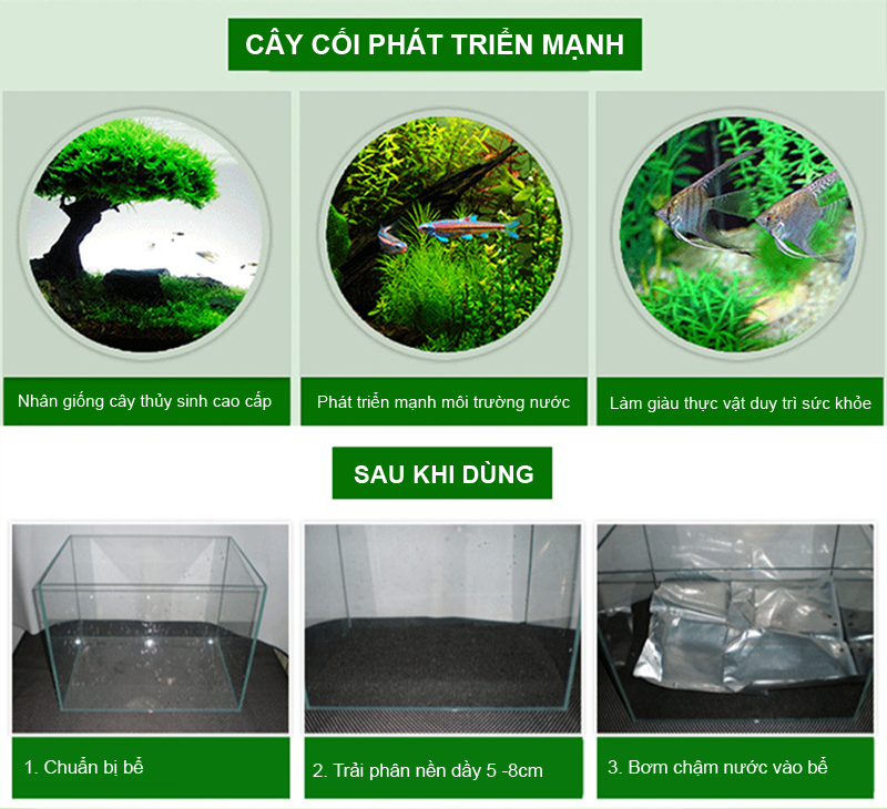 - Sử dụng : cứ 8 lít nước dùng 1kg phân nền