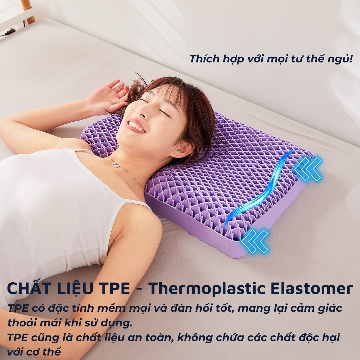 Gối công thái học TPE(Thermoplastic Elastomer) có nhiều đặc điểm vượt trội so với gối cao su non(Latex Foam) trước đây.