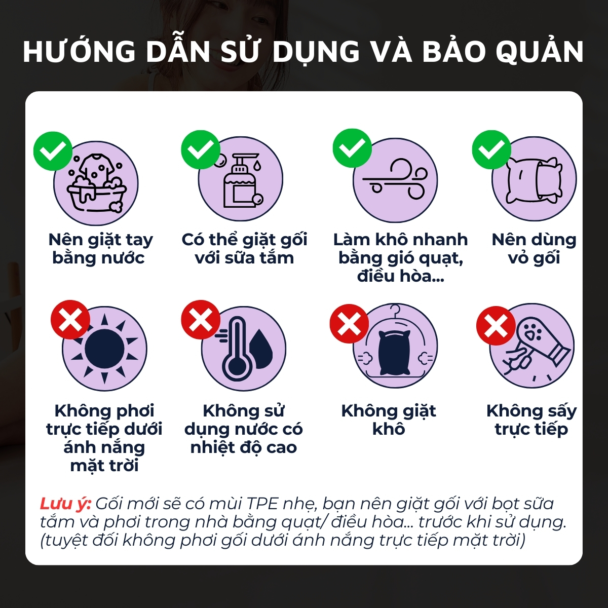 - Cấu trúc hơn 1000 lỗ thông khí giúp gối luôn mát mẻ và lưu thông không khí.