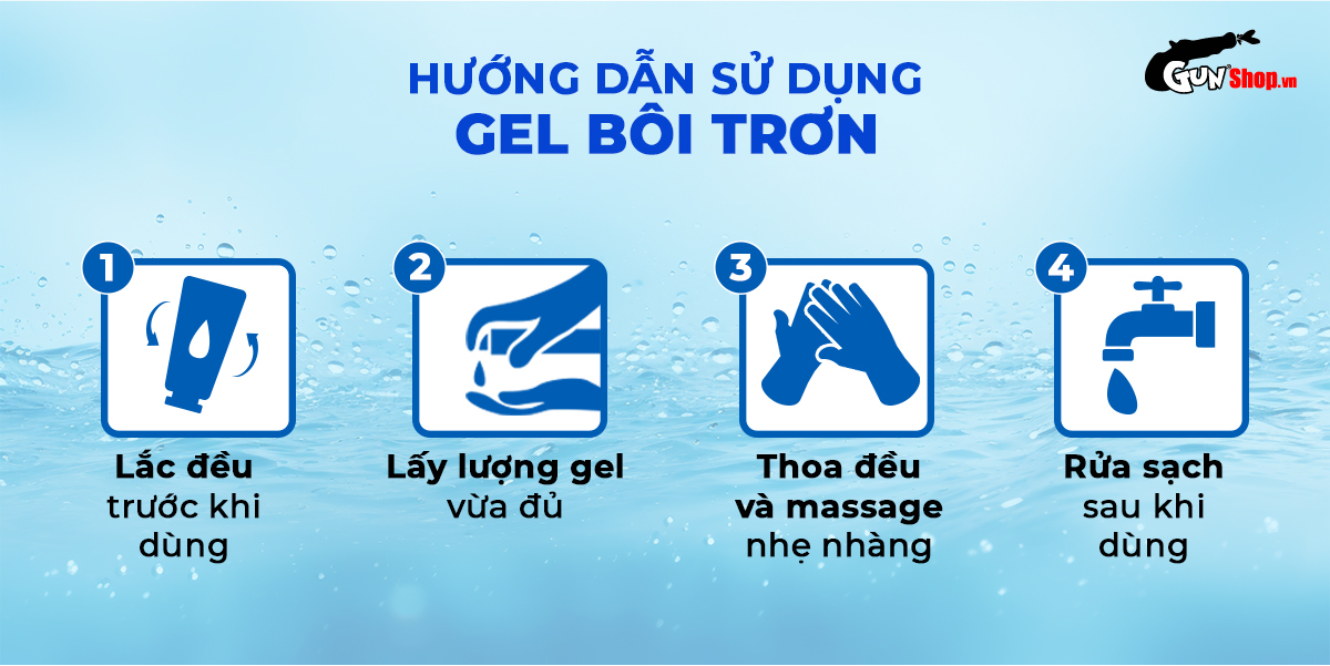 - Cách dùng: Lắc đều sản phẩm trước khi mở, lấy một lượng vừa đủ gel bôi trơn ra tay. Tùy thuộc vào độ khô của "cô bé" mà lấy lượng gel sao cho phù hợp, bôi trực tiếp vào bên trong và ngoài “cô bé”.