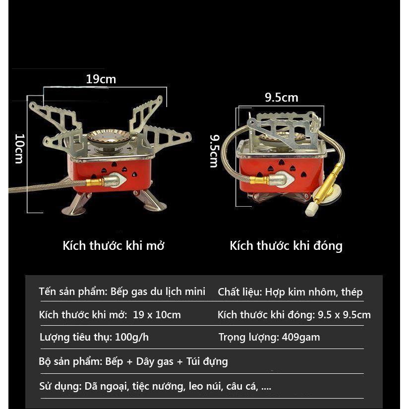 Bếp Gas Mini Du Lịch, Bếp Gas Cắm Trại Siêu Nhỏ Gọn Có Dây Nối Bình Gas An Toàn - Hàng Loại 1 - Chính Hãng