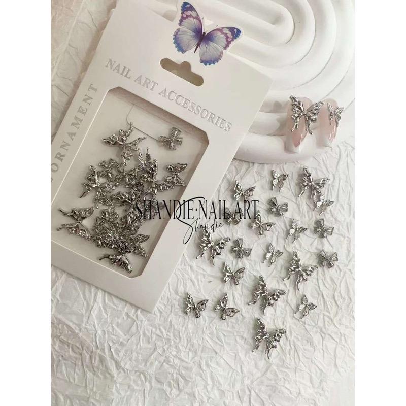 Set 50 Charm Bướm Nơ Kim Loại Đính Móng Hàn Quốc Làm Nail, Charm Nơ Mix Bướm Màu Bạc Trắng Gắn Móng Siêu Đáng Yêu Nữ Women