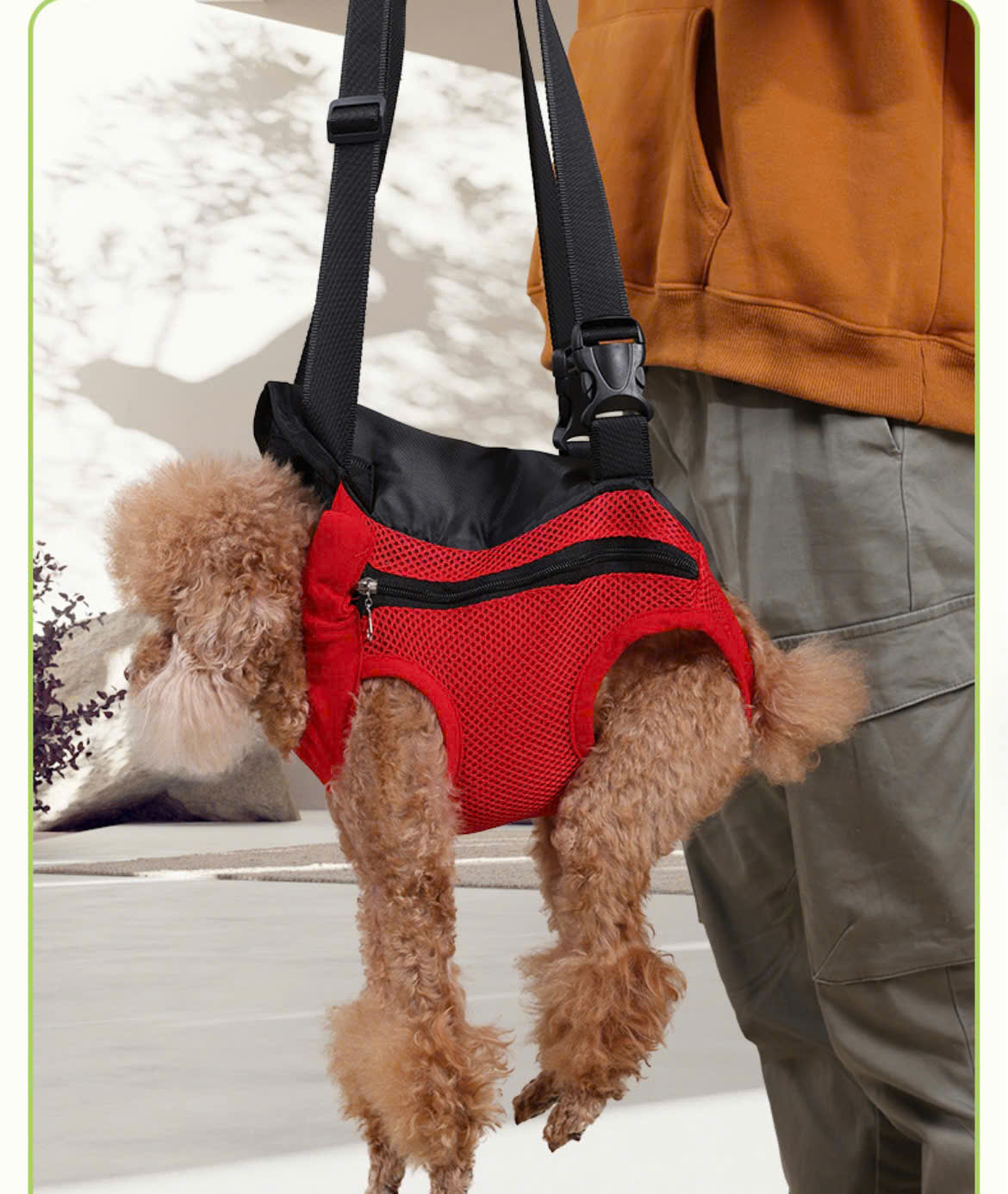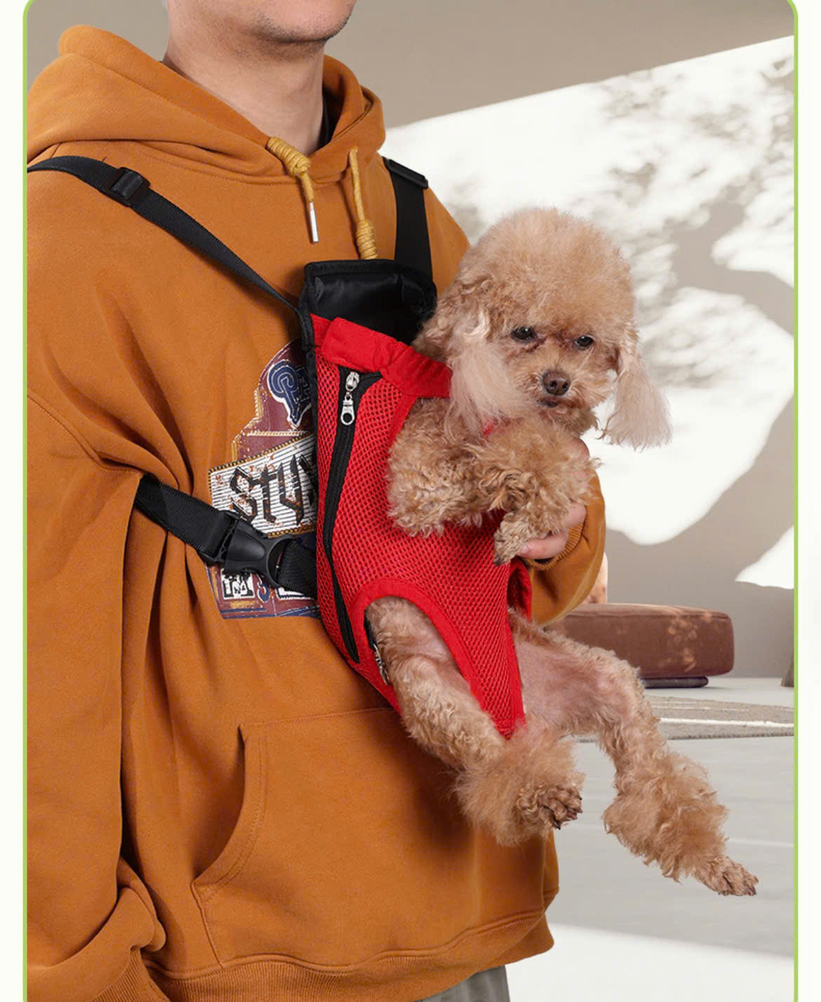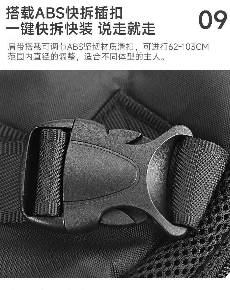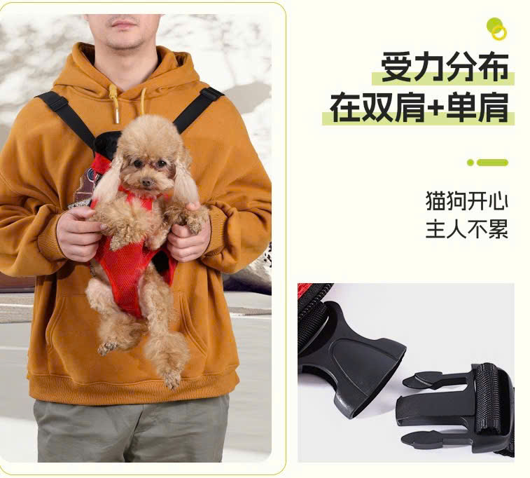 - Có thể đeo ở phía trước ngực hoặc sau lưng tương tự như balo, địu có dây an toàn móc vào yếm hoặc vòng cổ, và nút điều chỉnh độ dày dây đeo để bạn luôn cảm thấy thoải mái nhất trong suốt thời gian sử dụng.