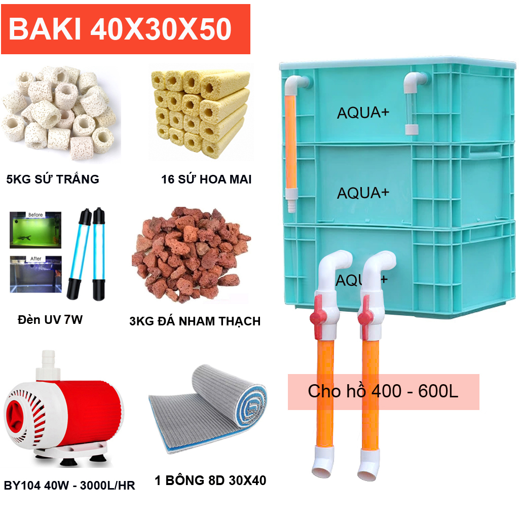 Mua Bộ Lọc Nước Hồ Cá Koi 400-600L: Thùng Baki 3 Tầng, Bơm Baoyu 40W, Đèn UV 7W, Vật Liệu Lọc Đầy Đủ (B) giá rẻ nhất ở đâu?Giới thiệu Bộ Lọc Nước Hồ Cá Koi 400-600L: Thùng Baki 3 Tầng, Bơm Baoyu 40W, Đèn UV 7W, Vật Liệu Lọc Đầy Đủ (B)