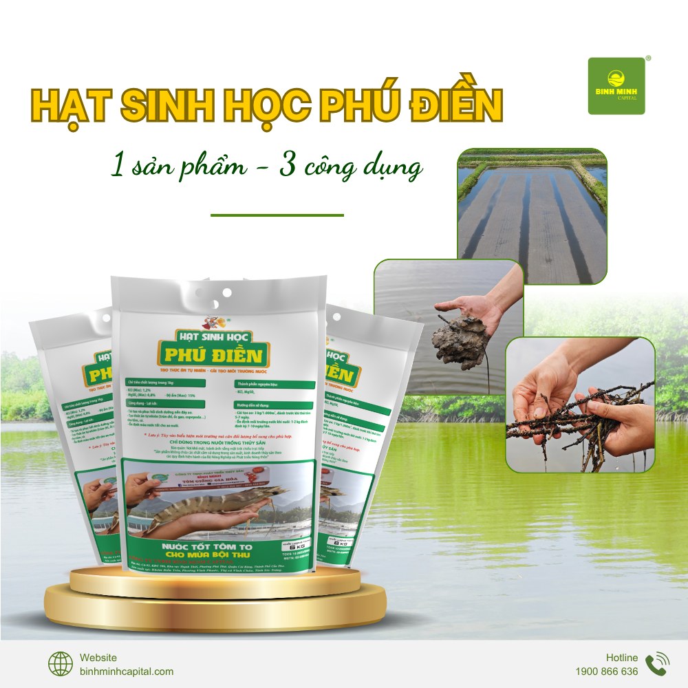 Hãy tưởng tượng ao tôm của bạn luôn trong xanh, sạch đáy và tôm lớn nhanh từng ngày. Với Hạt sinh học Phú Điền, đó không chỉ là mơ ước – mà là kết quả thực tế của công nghệ vi sinh tiên tiến từ Bình Minh Capital.