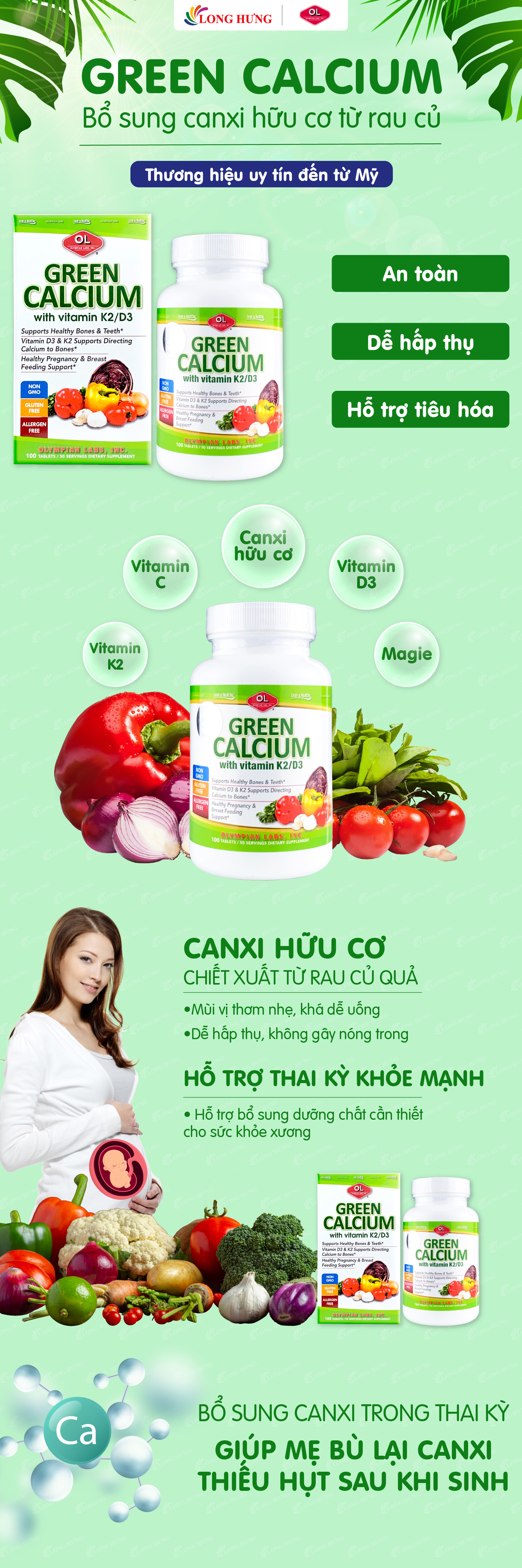 Viên uống Olympian Labs Green Calcium bổ sung canxi hữu cơ (100 viên) - Hàng chính hãng