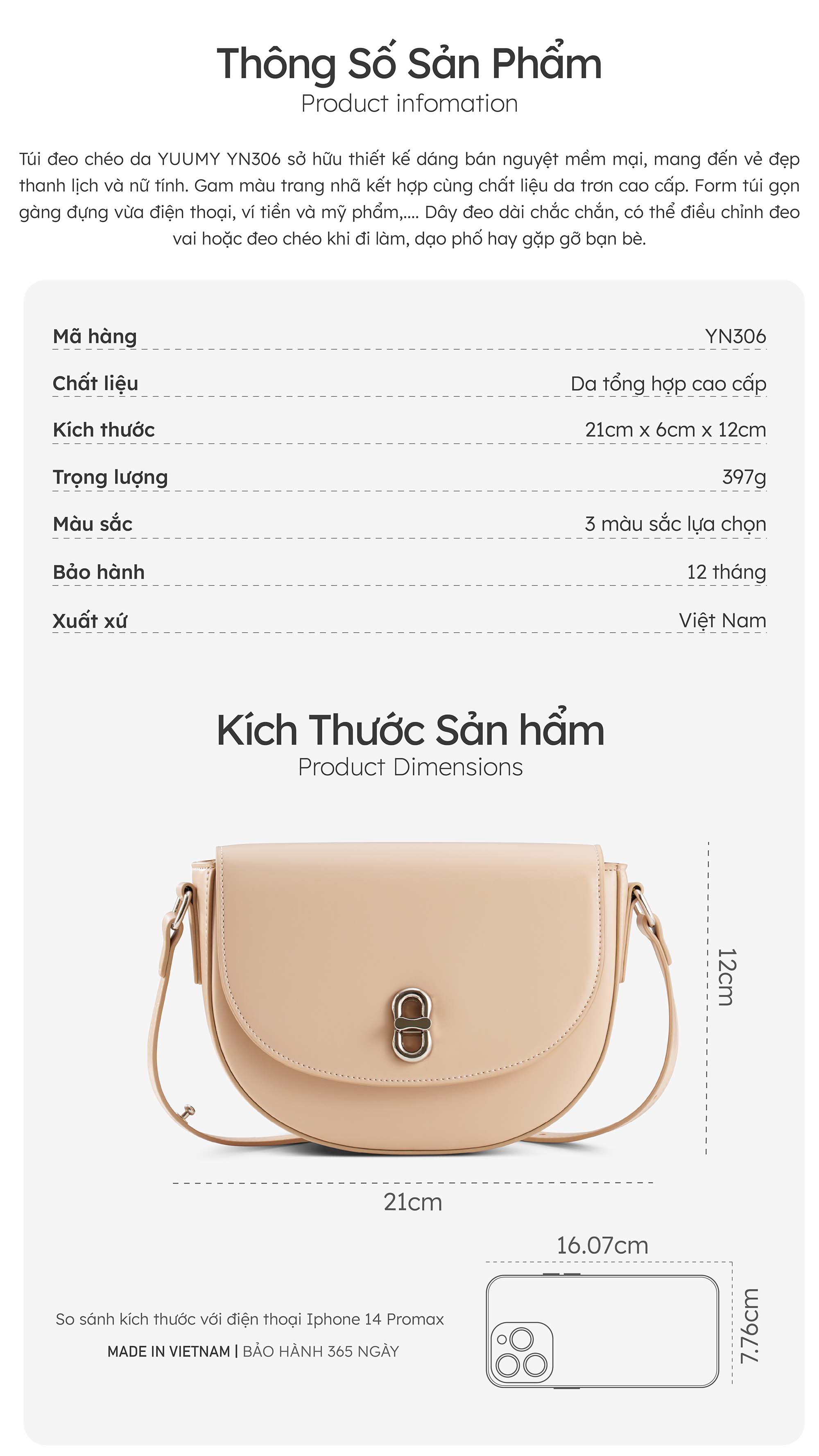 Giới thiệu Túi đeo chéo nữ YUUMY YN306