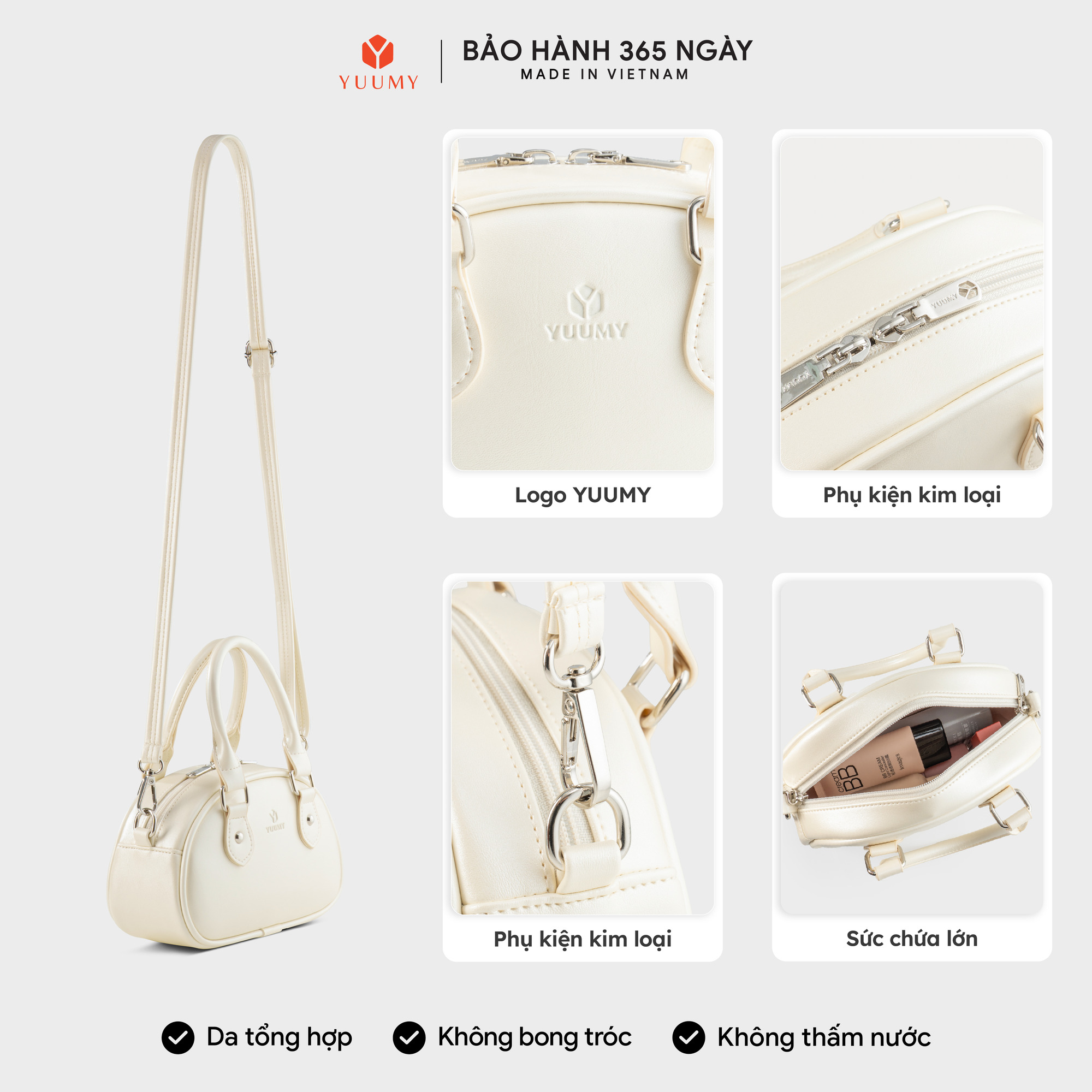 Túi xách mini YTX93 Yuumy sở hữu thiết kế dáng hến mềm mại, mang lại cảm giác nữ tính và thanh lịch ngay từ cái nhìn đầu tiên. Túi được làm từ chất liệu da tổng hợp cao cấp, bề mặt mịn, dễ sử dụng hằng ngày. Form túi đứng dáng, đáy chắc chắn giúp giữ hình dáng gọn gàng. Quai xách tay thiết kế cong vừa tay, kết hợp cùng dây đeo chéo linh hoạt. Kích thước nhỏ gọn đựng vừa điện thoại, ví và mỹ phẩm, rất phù hợp để đi chơi, dạo phố, hẹn hò hoặc dự tiệc nhẹ.