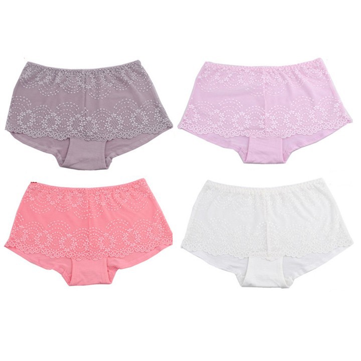 Combo 4 quần lót nữ cotton phối ren kiểu quần đùi đơn giản gợi cảm quyến rũ cho bạn gái duới 57kg (Ninedra)