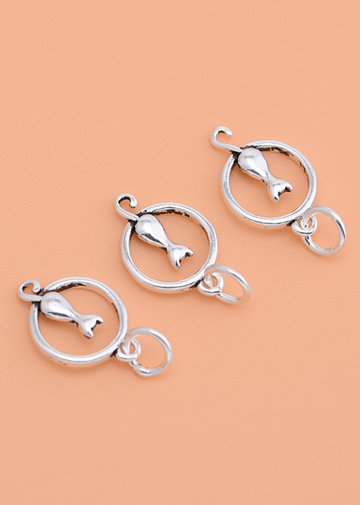 Giới thiệu Combo 3 cái charm bạc hình mèo ngồi vòng tròn treo - Ngọc Quý Gemstones