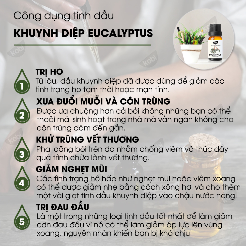Combo 3 Tinh Dầu Xông Phòng Kobi: Tinh Dầu Khuynh Diệp (30ml) + Tinh Dầu Sả Chanh (30ml) + Tinh Dầu Bưởi (30ml) - Tinh Dầu Thiên Nhiên Nguyên Chất, Tốt Cho Bé Sơ Sinh, Giúp Giữ Ấm Cơ Thể, Phòng Ngừa Bệnh Hô Hấp Hiệu Quả
