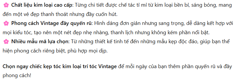 Kẹp tóc kim loại trí tóc phong cách Vintage – Sự kết hợp hoàn hảo giữa cổ điển và hiện đại