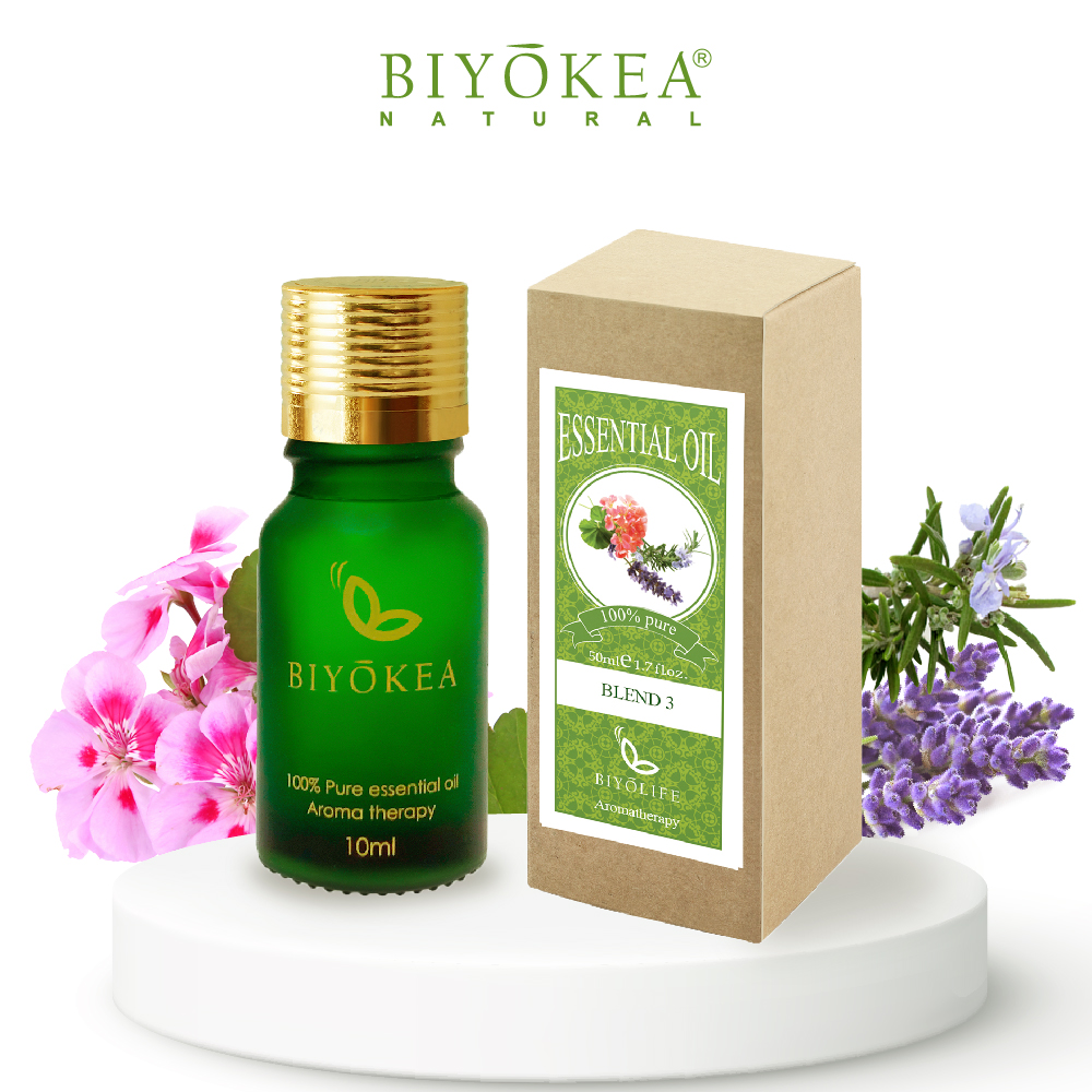 Sự kết hợp ăn ý giữa 3 loại thảo dược tự nhiên tinh dầu oải hương, tinh dầu phong lữ và tinh dầu hương thảo có nhiều công dụng trong việc thư giãn, giảm stress,… Tinh dầu hỗn hợp 3 được sản xuất và phân phối bởi Biyokea, 100% chiết xuất từ nguyên liệu tự nhiên, an toàn cho sức khỏe.