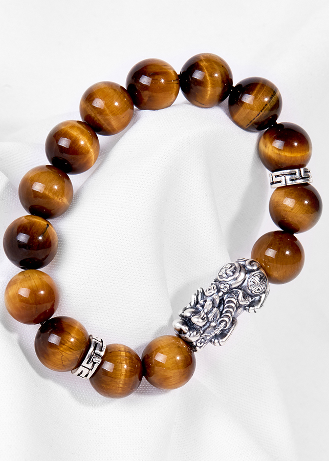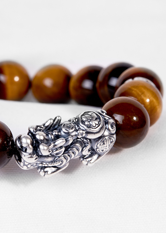 - Vòng Tay Đá Mắt Hổ Vàng Nâu Phối Charm Tỳ Hưu Bạc mang trên người có ý nghĩ xua tan phiền não, lo lắng. Ngoài ra nó còn mang mang đến sự lạc quan vui vẻ, hạnh phúc và may mắn.