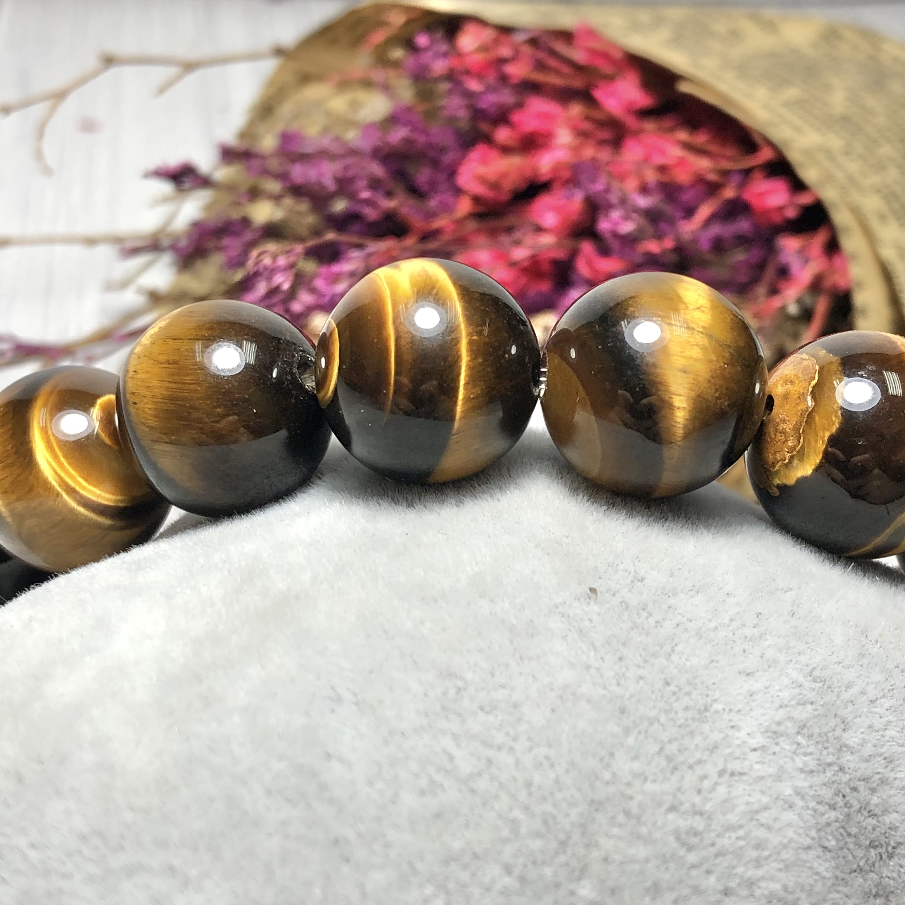 Giới thiệu Vòng tay Thạch Anh Mắt Hổ vàng nâu 14mm mix tỳ hưu