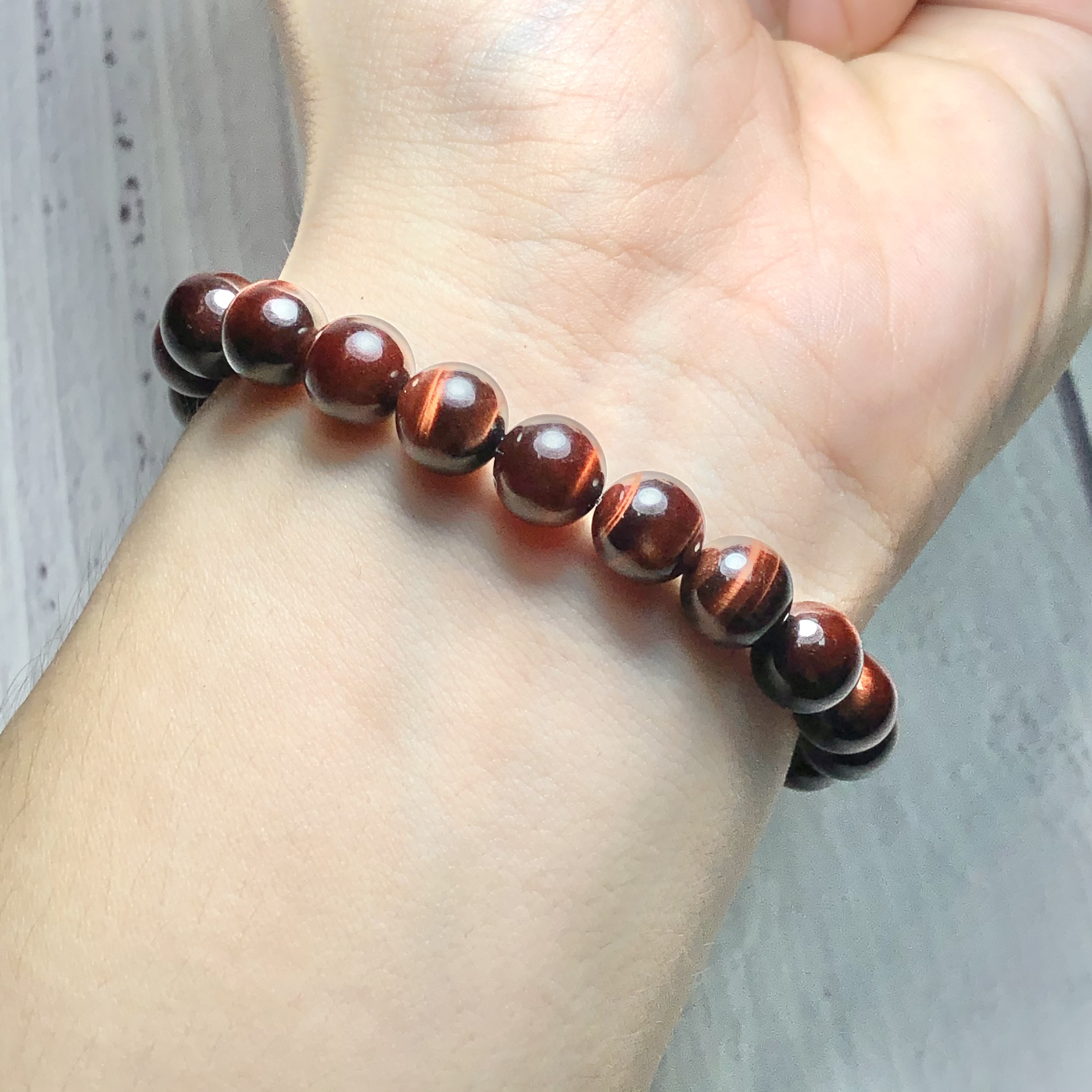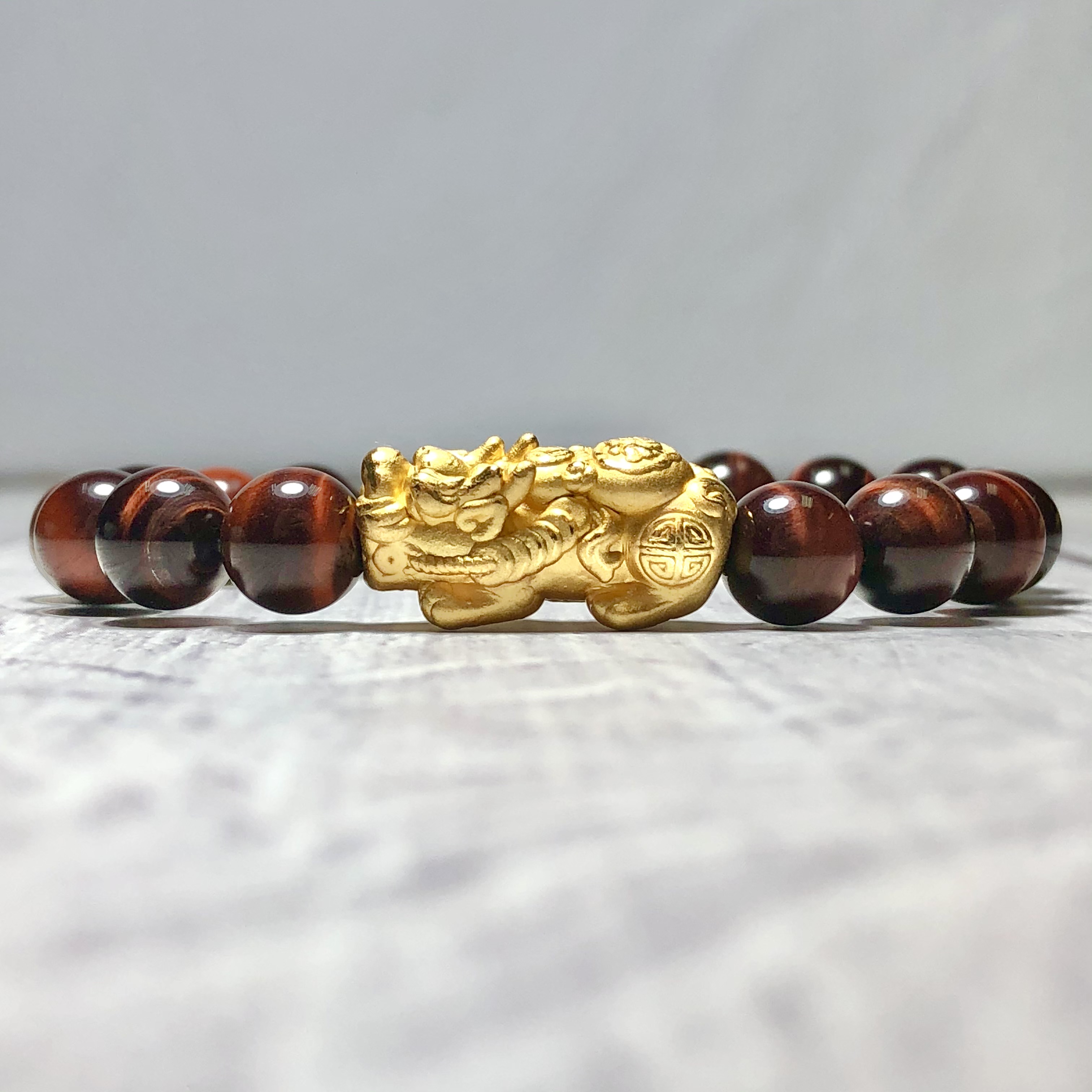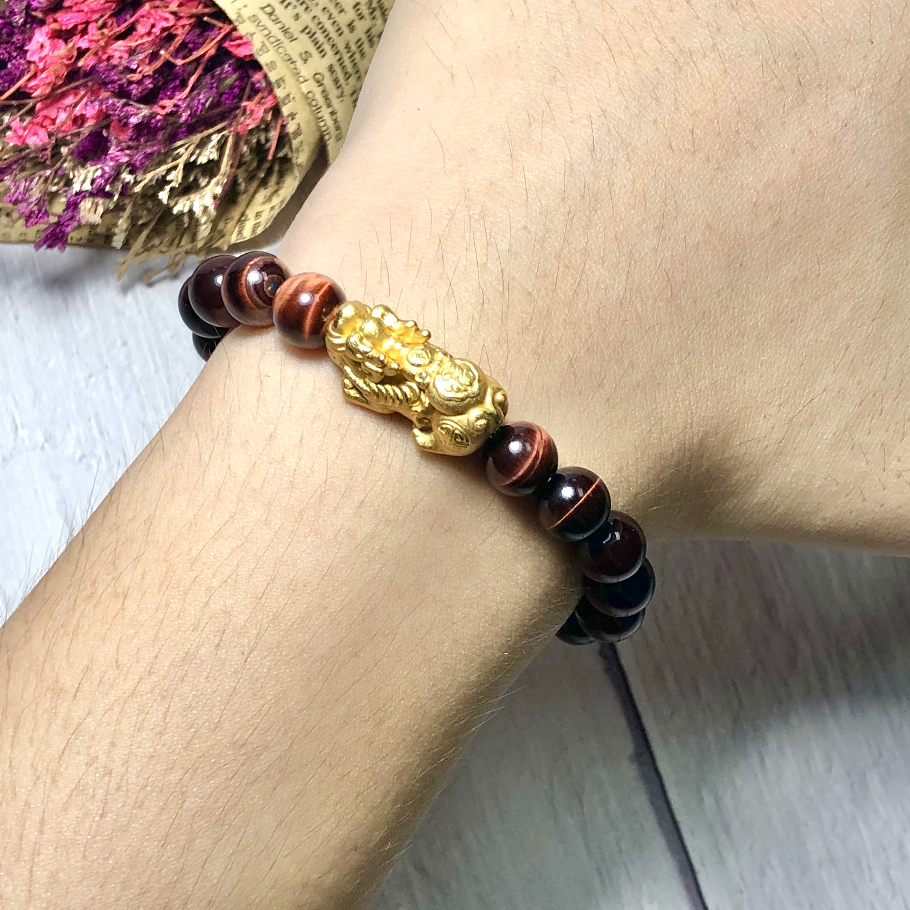 Giới thiệu Vòng tay Thạch Anh Mắt Hổ nâu đỏ 8mm mix tỳ hưu bạc