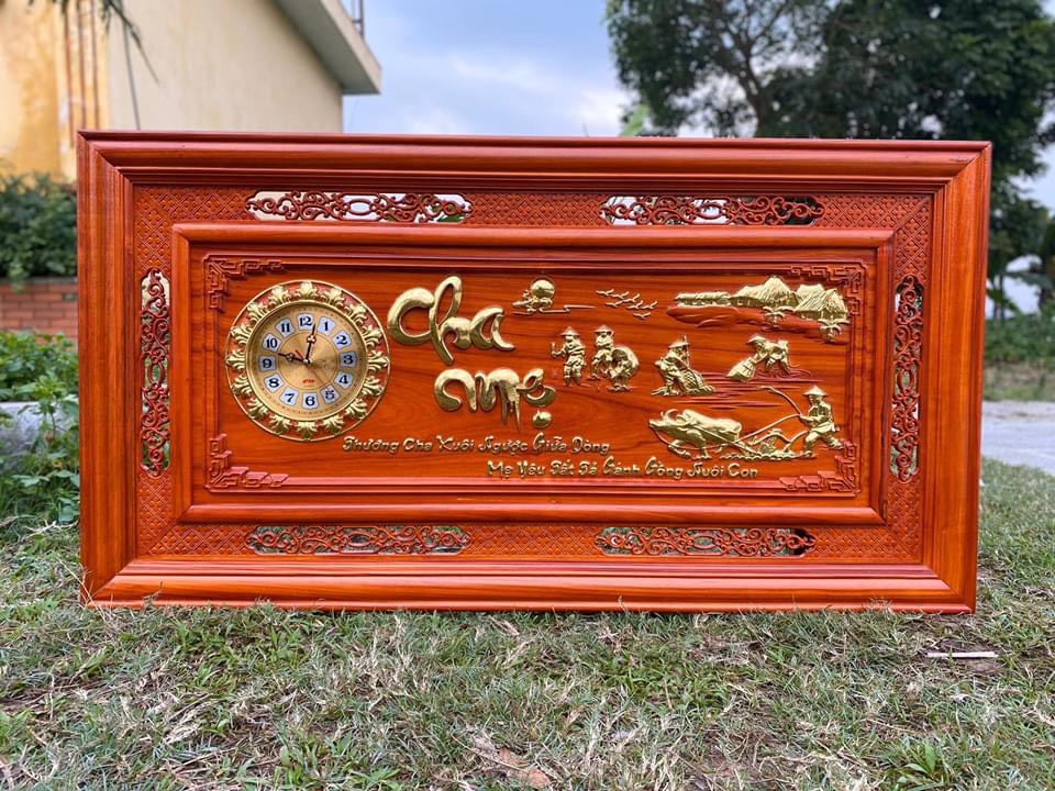 Giới thiệu Tranh đồng hồ treo tường chữ cha mẹ bằng gỗ hương đỏ kt 67×127×4cm