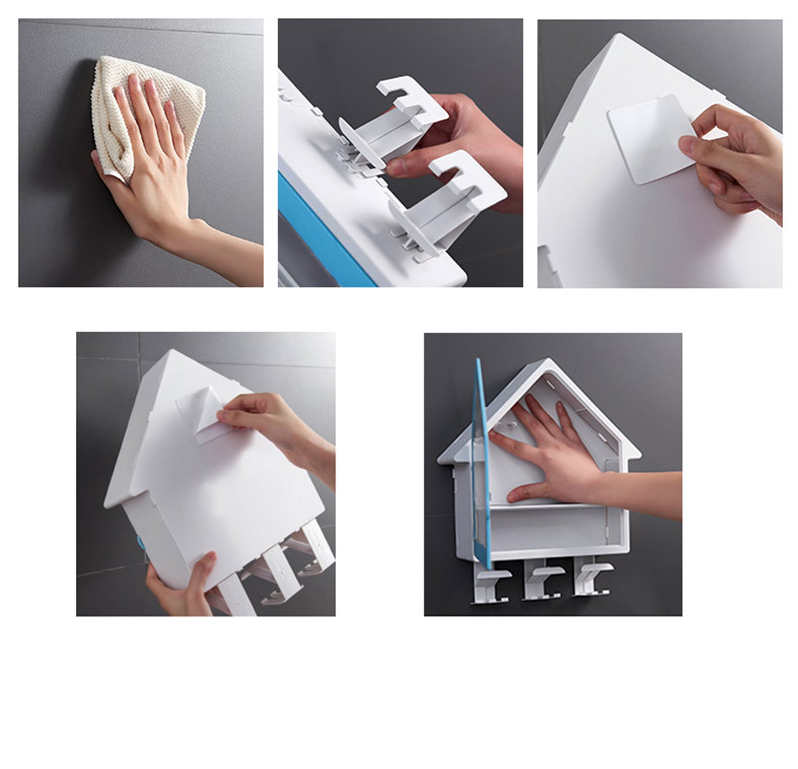 Nhiều công dụng: ngăn lớn đựng được kem đánh răng, mỹ phẩm, có khấc nhỏ để treo dao cạo râu, phía dưới hộp có giá ú ply và treo bàn chải đanh răng
