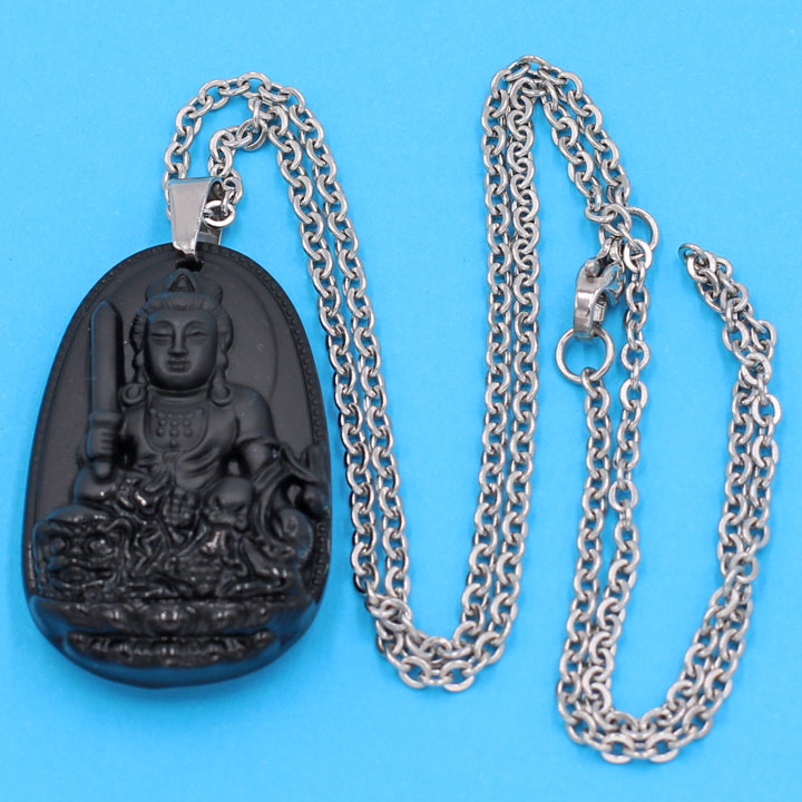 Giới thiệu Vòng cổ phật Văn Thù Bồ Tát - thạch anh đen 3.6cm DITTEB3 - dây inox bạc - tuổi Mão