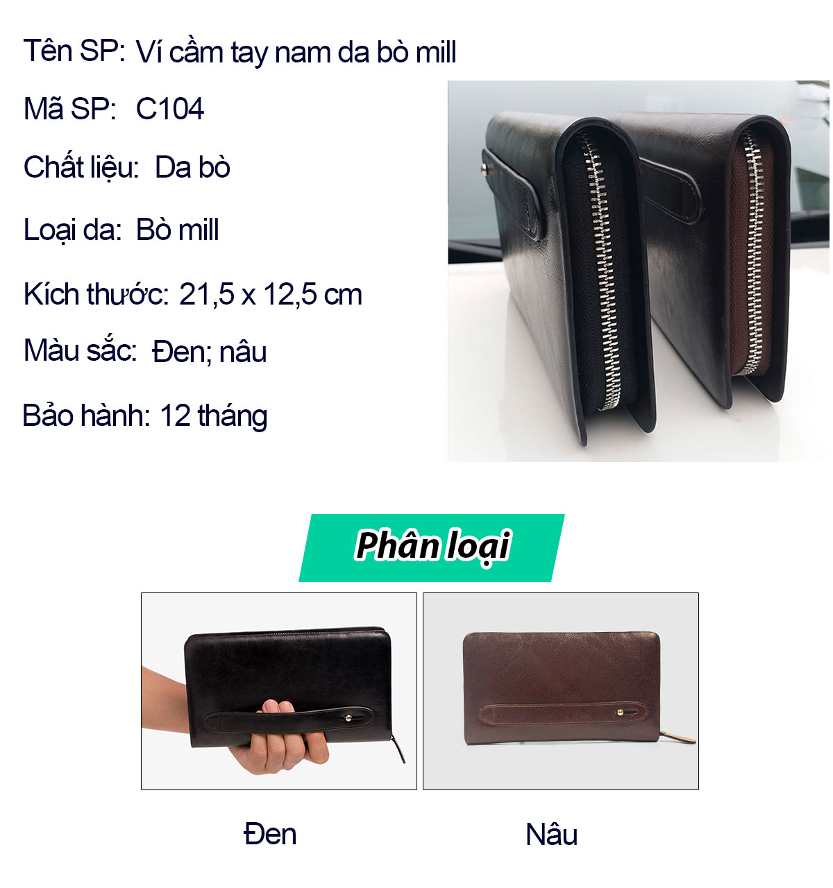 Ví cầm tay nam da bò mill C104 cao cấp, ví dài nam da thật, nhiều ngăn hai màu nâu và đen đựng điện thoại, đồ cá nhân phong cách, Fullbox hộp sang trọng làm quà tặng, thương hiệu Bụi leather chuyên đồ da thật,bảo hành 12 tháng