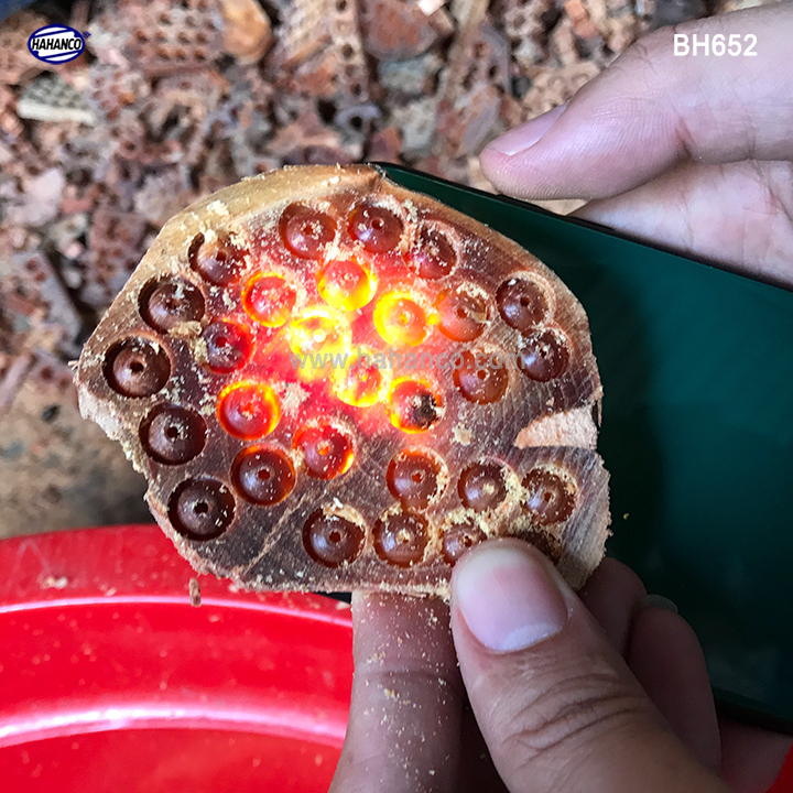 - P/s: Soi thấu quang bằng đèn led, soi dọc theo thớ gỗ sẽ thấy hiện tượng sáng rực màu đỏ như huyết rồng. gỗ tự nhiên mức độ thấu quang ít nhiều tùy từng hạt, vòng được phủ PU bóng để bảo vệ gỗ và tinh dầu.