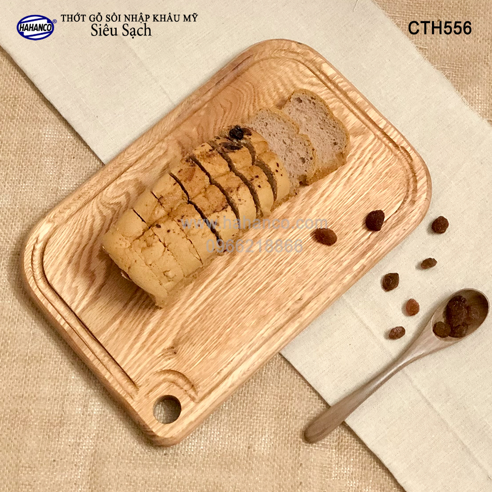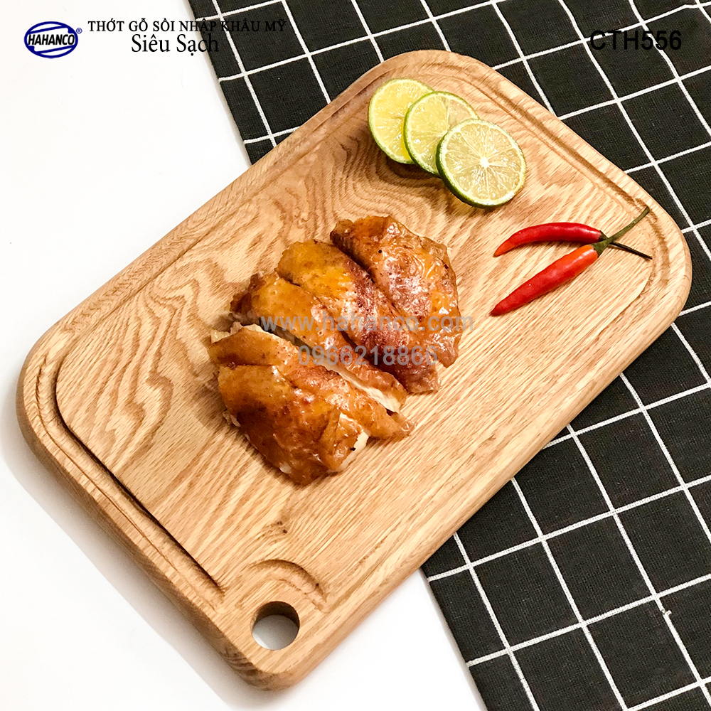 Thớt hình chữ nhật gỗ Sồi Mỹ (OAK) có rãnh bao quanh tiện dụng (CTH556) hàng Xuất Khẩu Châu Âu - khay bánh mì/trái cây/ bít tết/ pizza/ phụ kiện chụp ảnh, bày món ăn trong nhà hàng - Sang trọng trên bàn ăn - HAHANCO