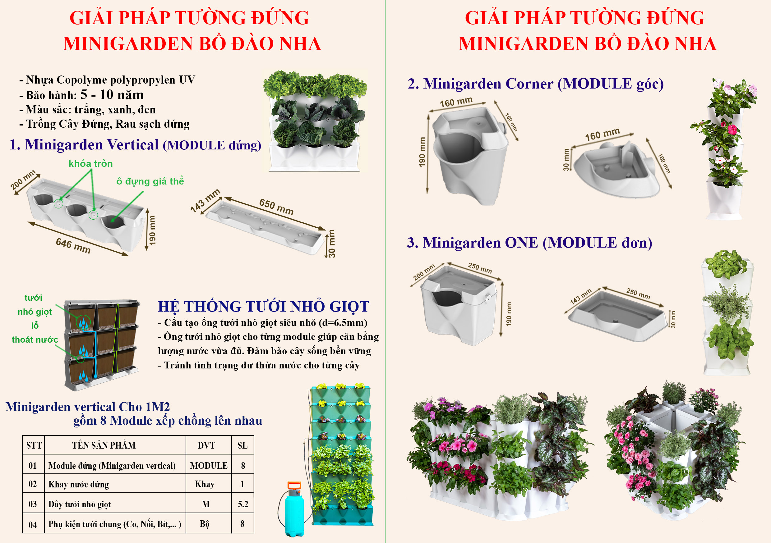 | Hướng dẫn bảo quản | Vườn Đứng Minigarden Vertical bằng nhựa PP Chóng UV Cao cấp nên chịu lực trên mọi địa hình |