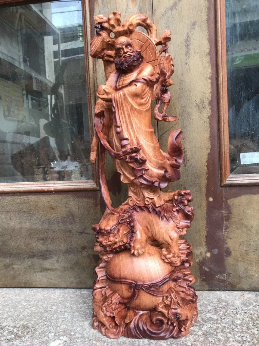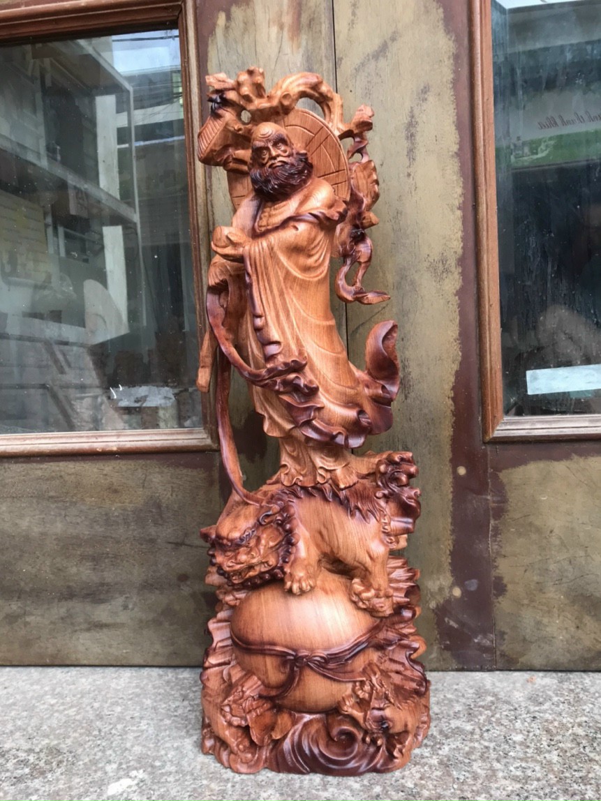 Giới thiệu Tượng đạt ma sư tổ ngự tam lân bằng gỗ hương đá tô làm mầu giả cổ kt cao 60×21×11cm