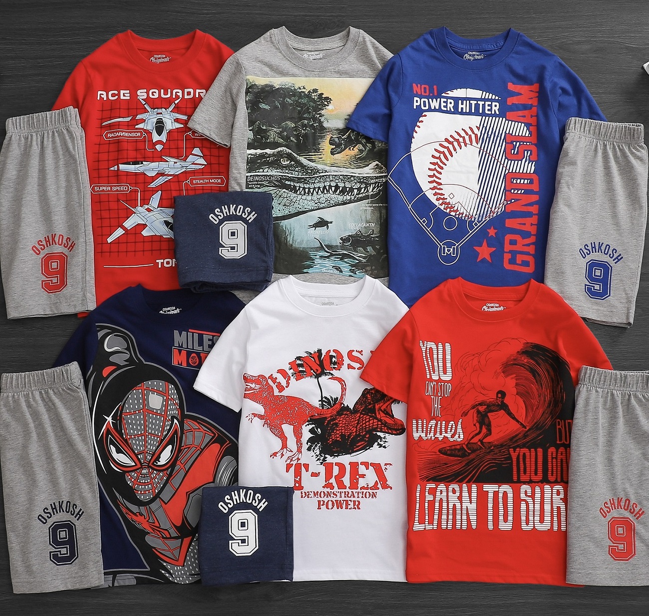 Bộ cộc tay bé trai 6-16 tuổi hàng xuất OSHKOSH, Bộ hè cho bé size đại hình in sắc nét