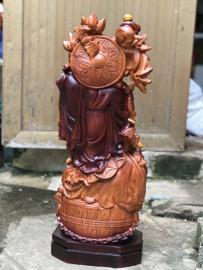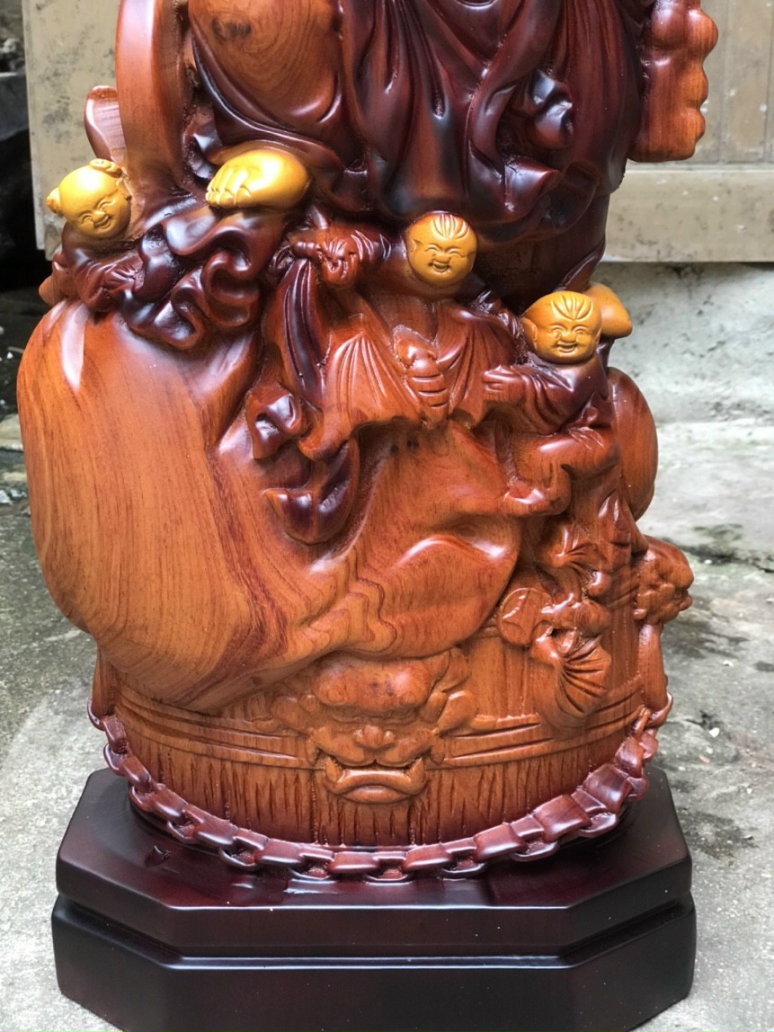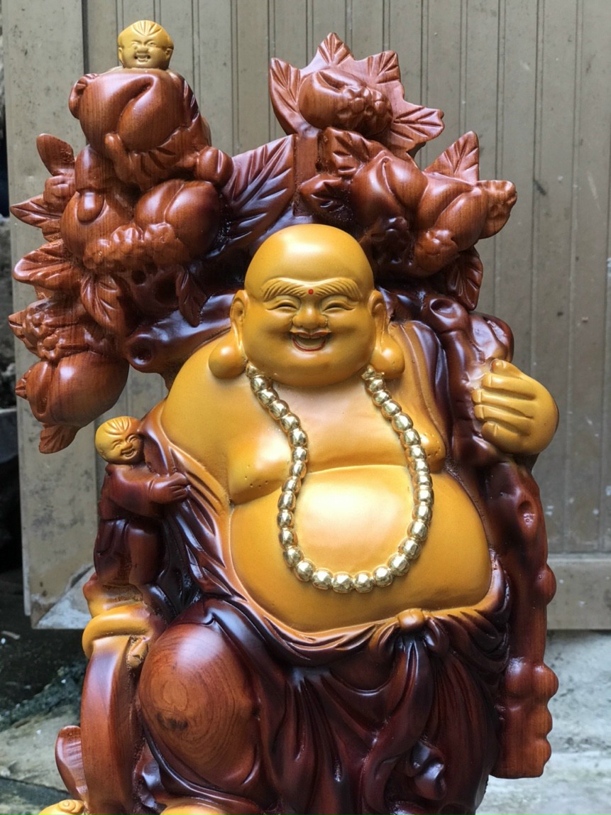 _ Tượng phật di lặc ngũ phúc được trạm khắc vô cùng tỉ mỉ .Tinh sảo kỳ công đi hầu hết tất cả mọi chi tiết góc ngách nội dung hoa văn của tượng .Đều được ngọt tỉa chỉnh sửa hoàn toàn bằng tay thủ công .Đồng thời tượng được kiểm định kỹ lưỡng như cho vào thẩm sấy cho gỗ khô kiệt .Mục đích trống dập nứt vênh mo mối mọt ,Kết hợp với trà nhám đánh giấy giáp nhiều lần cho sạch sẽ sờ mát lạnh ,Rồi cho vào phun lót để giữ lại mầu sắc vân gỗ tưp nhiên ,Cũng như pu tô làm mầu giả cổ ,Tượng di lặc được làm và hoàn thiện ,do bàn tay khối óc tài hoa ,Từ những người thợ giàu kinh nghiệm cũng như tay nghề cao trong làng nghề truyền thống .Chính vì thế tượng phật di lặc đã đáp ứng đầy đủ những tiêu trí ( Đẹp bền rẻ ) Thẩm mỹ nghệ thuật với chất lượng tuyệt vời