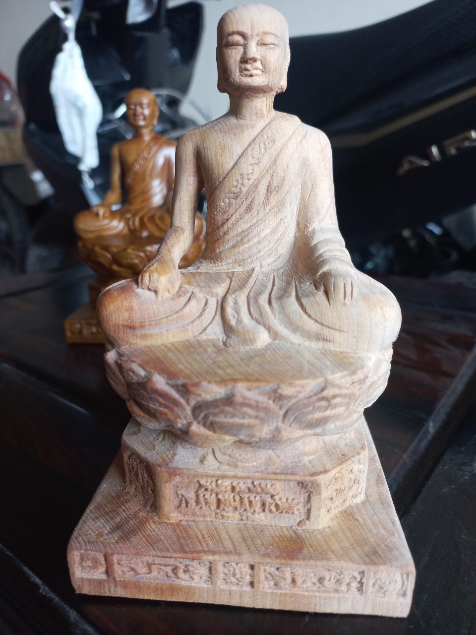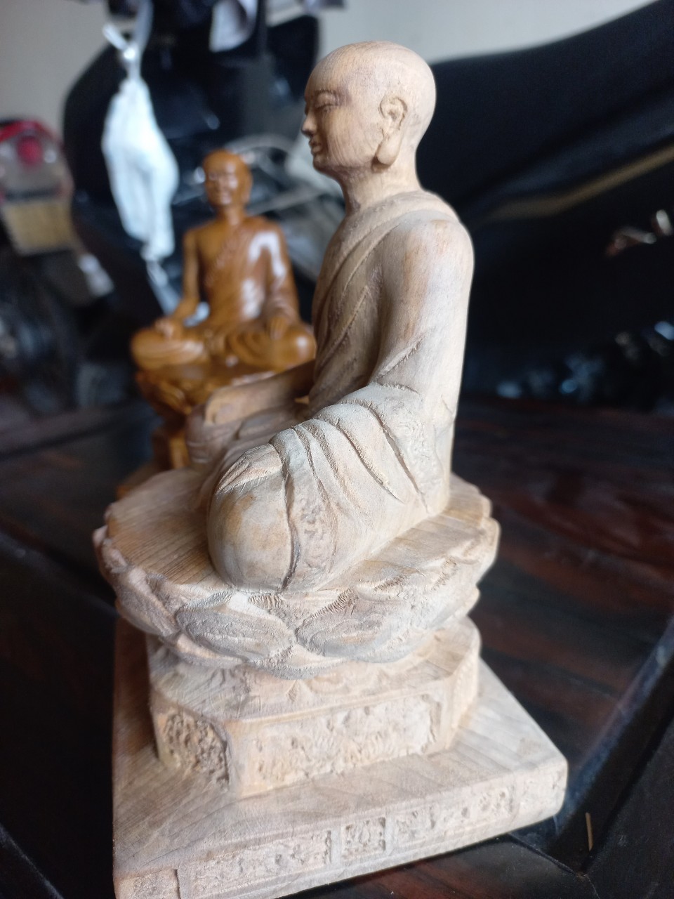 Giới thiệu Tượng phật hoàng trần nhân tông bằng gỗ ngọc am kt cao 15×9cm