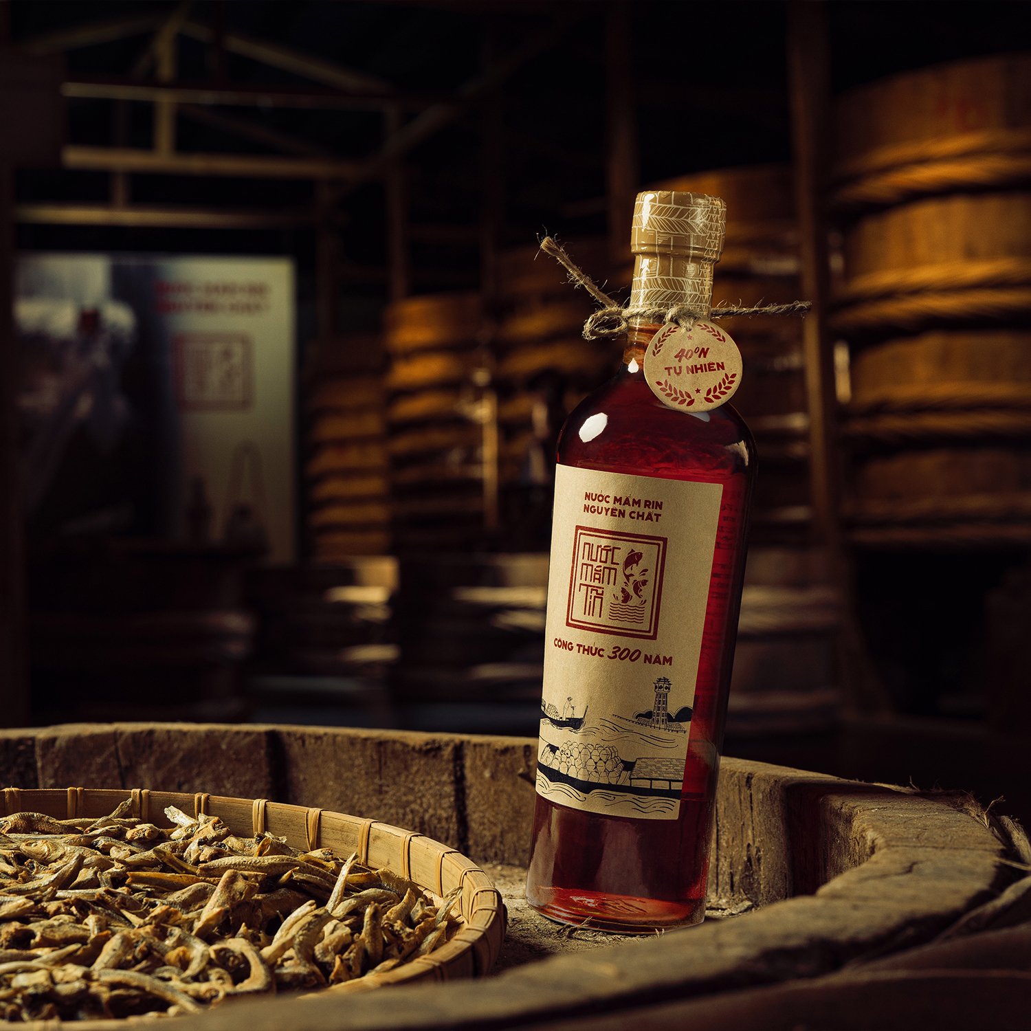 Với công thức 300 năm từ Làng Chài Xưa, nước mắm Tĩn trứ danh ngày nay là nước mắm rin đặc sệt kéo rút trực tiếp từ thùng gỗ ủ chượp, chín chậm từ 12 - 24 tháng với cá cơm than con to béo tươi và muối tinh khiết