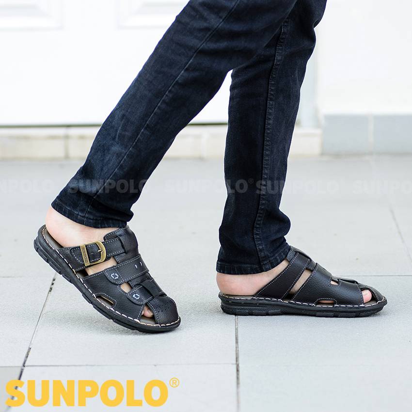 Giới thiệu Dép Bít mũi Da bò cao cấp SUNPOLO ABI020
