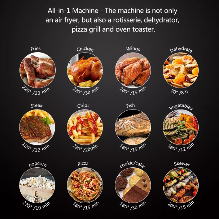 | Kích thước | BioloMix là Thương hiệu đã được Đăng ký tại Hoa Kỳ và Liên minh Châu Âu, những người luôn tận tâm mang đến cho bạn những thiết bị nhà bếp tốt nhất cho sức khỏe. Sản phẩm Biolomix giúp sức khỏe trở nên dễ dàng. Các sản phẩm được thiết kế và phát triển dựa trên giá trị cốt lõi là cung cấp giá trị và chất lượng vượt trội, đồng thời mang lại lợi ích sức khỏe thực sự. Giới thiệu nồi chiên không dầu điện tử dung tích lớn 12 Lít, 16 trong 1 Biolomix MA510T – Nội thất thép không rỉ: Lò được thiết kế với nội thất bằng thép không gỉ chất lượng cao và đi kèm với phụ kiện – Lò nướng hoàn toàn khác biệt với lò nướng thông thường: 16 chức năng khác nhau như nướng gà, khoai tây chiên, pizza, bít tết… nó là lò nướng chính xác và hoàn hảo nhất. – Kiểm soát nhiệt độ (Lò nướng chính xác): Bạn sẽ dễ dàng nấu hương vị của những món ăn ngon lành mà không cần đến một giọt dầu trong nhà bếp. Nhiệt độ hâm nóng có thể được kiểm soát và điều chỉnh, cho phép bạn chọn và kiểm soát nhiệt độ tối ưu cho các loại thực phẩm khác nhau – Máy tất cả trong 1: Lò nướng không chỉ là nồi chiên không khí mà còn làm được nhiều thứ hơn lò lướng thông thường: Làm bánh mì, máy khử nước, máy nướng bánh pizza, có thể hoàn thành nhiều món ăn ngon khác nhau, chẳng hạn như cánh gà quay, khoai tây chiên, pizza, bít tết và như thế; Một dụng cụ cần thiết trong nhà bếp, gần như có thể đáp ứng mọi yêu cầu cho con người. – Quy mô gia đình & Tiết kiệm không gian: Không gian nấu 12L làm cho nồi chiên không khí này trở thành một trong những nồi chiên không khí lớn nhất trên thị trường, trong khi vẫn đủ nhỏ gọn để dễ dàng đặt trên mặt bàn của bạn. – Với 3 mức giá nướng bên trong cho phép bạn chuẩn bị số lượng thực phẩm quy mô gia đình hoặc kiểm soát tốc độ và độ giòn của thực phẩm của bạn. – Không gian để nướng lớn: Với dung tích 12L nó như Quán bánh ngọt tích hợp, nướng nguyên miếng lớn, giá đỡ Kababs, và cả con gà ! Có được thịt mềm, giòn, cá đen hoàn hảo và rau củ được nướng một cách chuyên nghiệp với bánh quay tích hợp trong lò chiên không khí BioloMix – thật nhanh chóng, dễ dàng và bạn sẽ thích nó! – Dễ sử dụng: màn hình điều khiển dễ đọc, dễ sử dụng với 16 cài đặt trước giúp bạn đoán được thời gian và nhiệt độ nấu. Nấu ăn để thuận tiện hoặc để gây ấn tượng mà không cần phải bật phạm vi. Và khi bạn hoàn tất, nội thất bằng thép không gỉ và chảo chống dính có thể tháo rời, giúp bạn dễ dàng làm sạch. Thông số kỹ thuật sản phẩm - Thương hiệu: BioloMix - Mã hàng: MA510T - Công suất: 1600W - Điện áp: 220V – 240V - Dung tích: 12 Lít - Tích hợp: 8 menu cài đặt với bộ hẹn giờ và điều chỉnh nhiệt độ - Kích thước: 31.5 cm x 33.4 cm x 37 cm - Trọng lượng: 7.4 kg * Chứng nhận chất lượng: EMC, CE, RoHS, GS