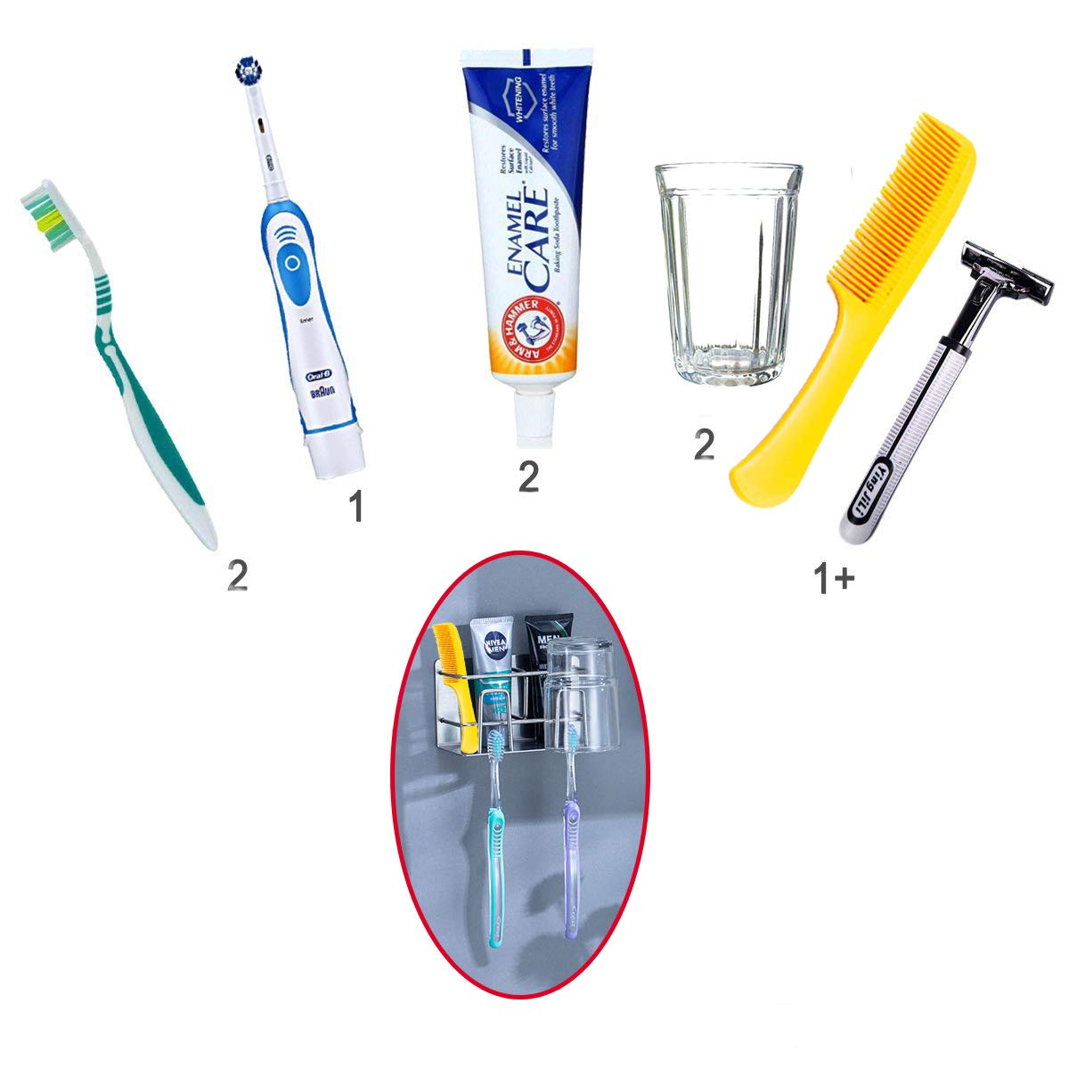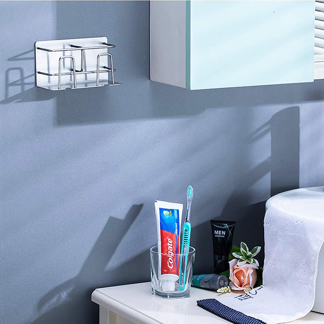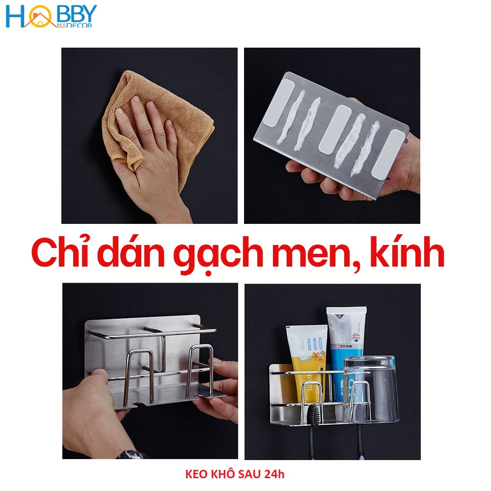 Kệ để bàn chải kem đánh răng 2 ngăn dán tường inox 304 Hobby Home Decor CD3