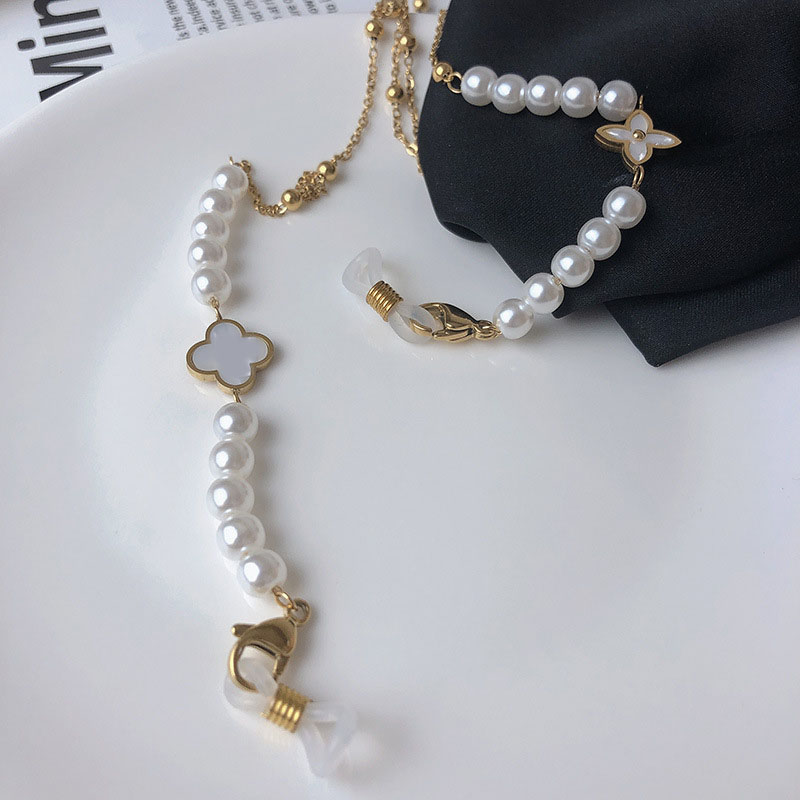Dây kính glasses cỏ bốn lá may mắn bất đối xứng chuỗi đeo khẩu trang hạt ngọc nhỏ thanh lịch ấn tượng trend idol