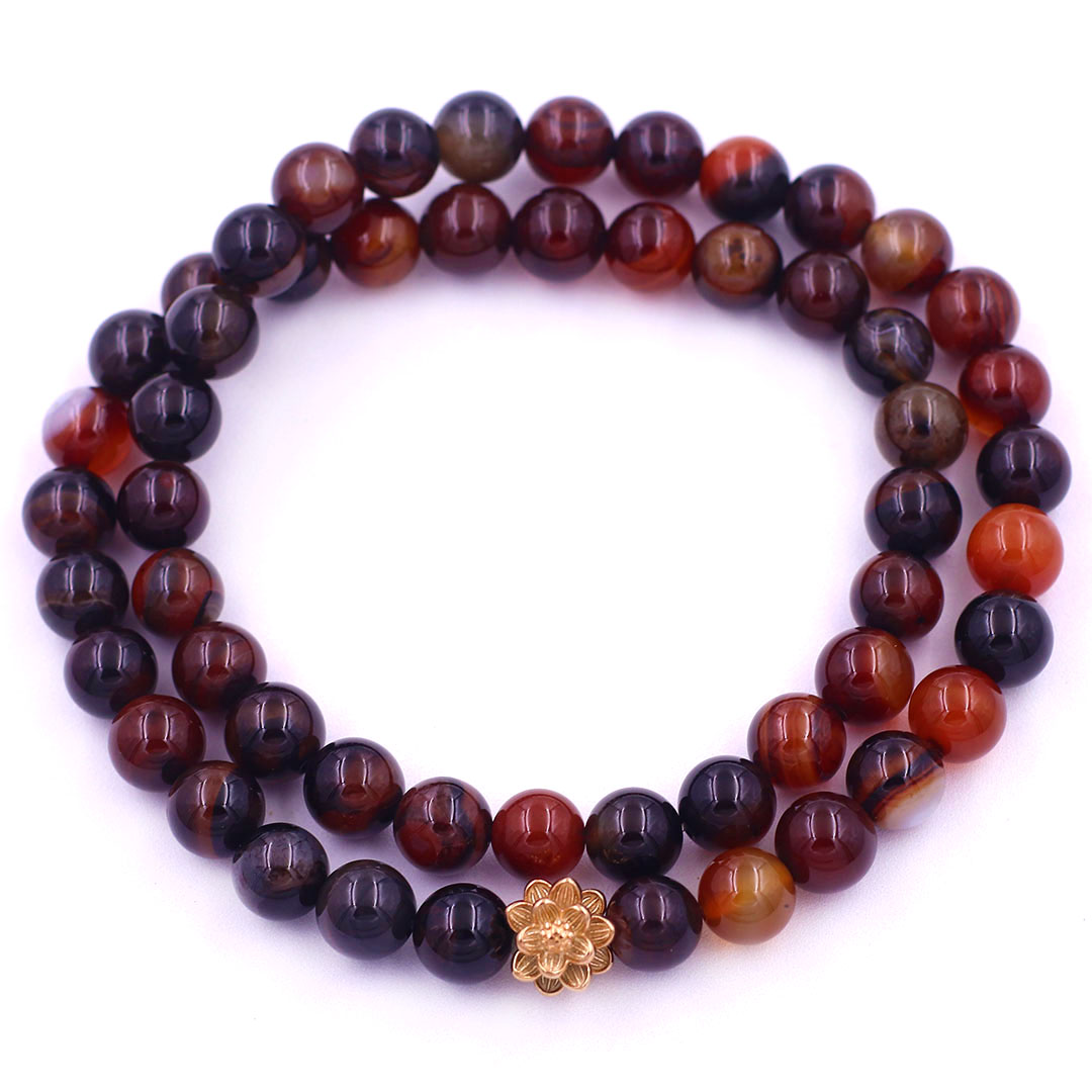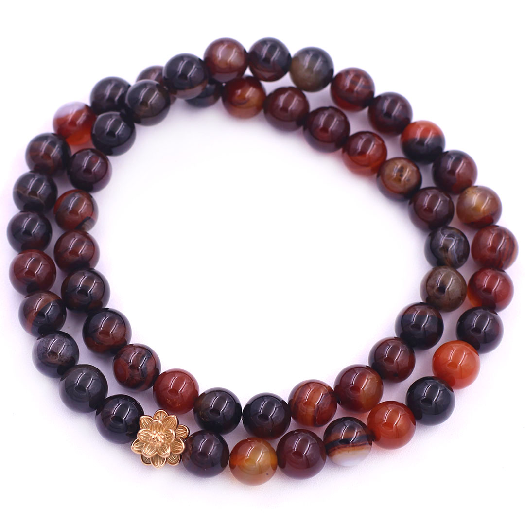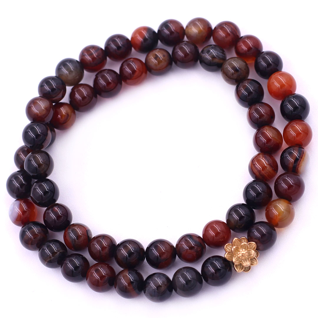 Vòng Chuỗi Niệm Phật Đá Thạch Anh Nâu 12 Ly 54 Hạt Charm Hoa Sen Inox, Vòng Chuỗi Phật Giáo, Chuỗi Niệm Phật Hạt To - Phong Thủy 868